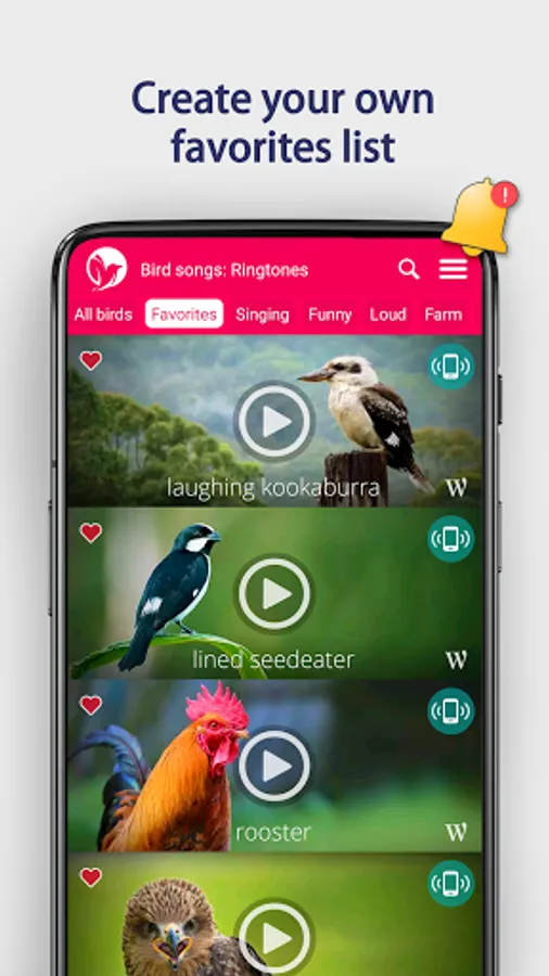 • bird ringtones for WhatsApp, Messenger, Line, Viber,