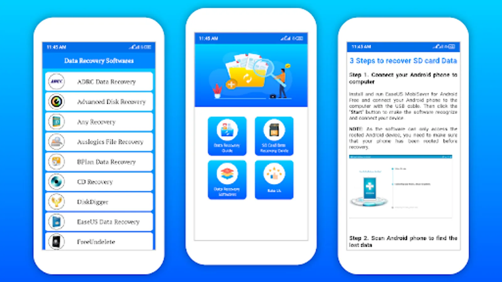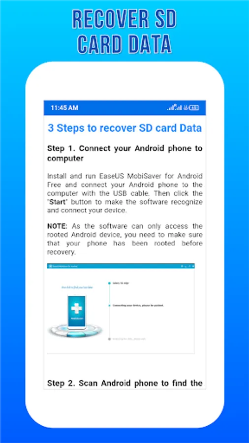 You can easily recover deleted videos and restore deleted pictures, documents, and audio files using an optimized data recovery for Android feature with the help of this app after getting info.