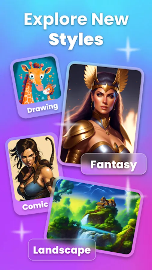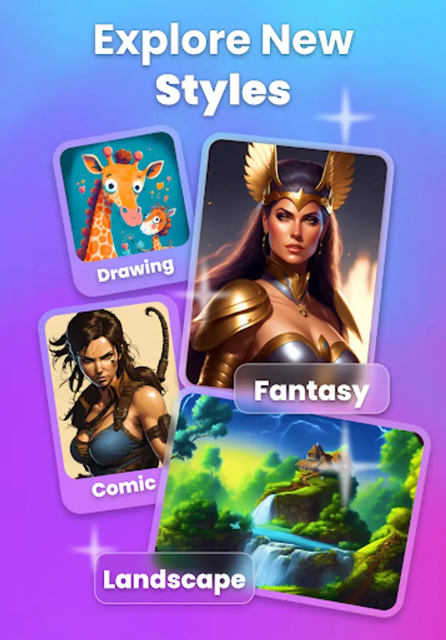 Bring your ideas to life with the power of AI through text! Create stunning AI art photo by transforming your words into impressive works of art. With a wide variety of styles to choose from, you can customize your creations to your liking with unlimited freedom. No art skills are required! The AI art creator app's AI (artificial intelligence) art tool makes it easy to turn your imagination into reality from text.