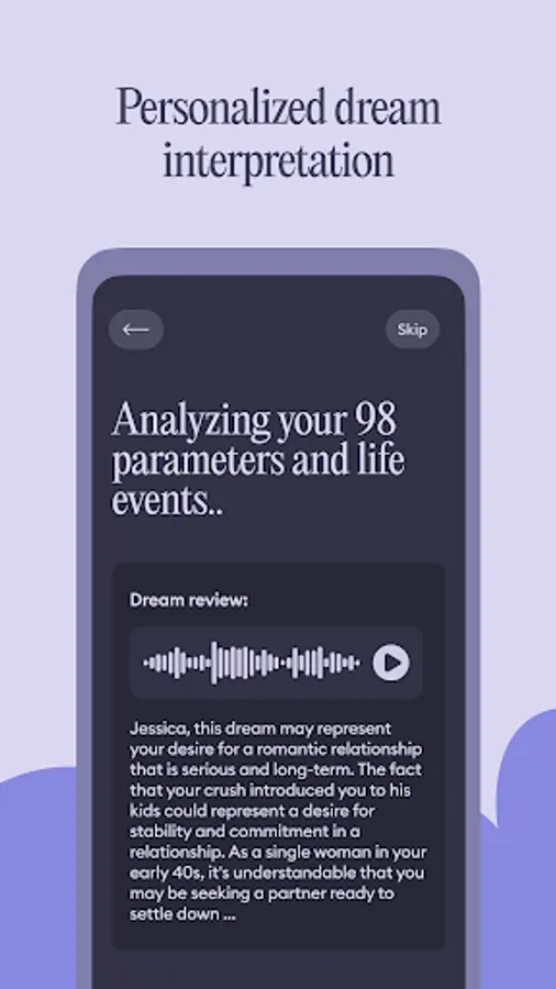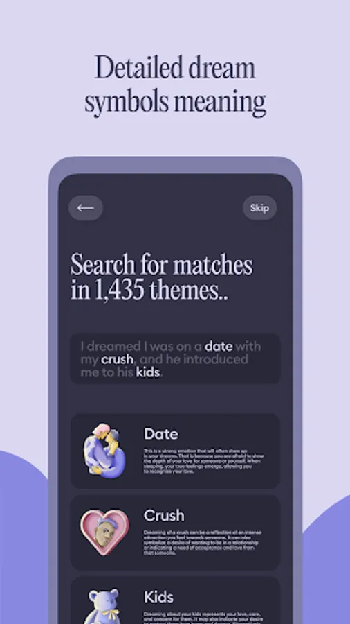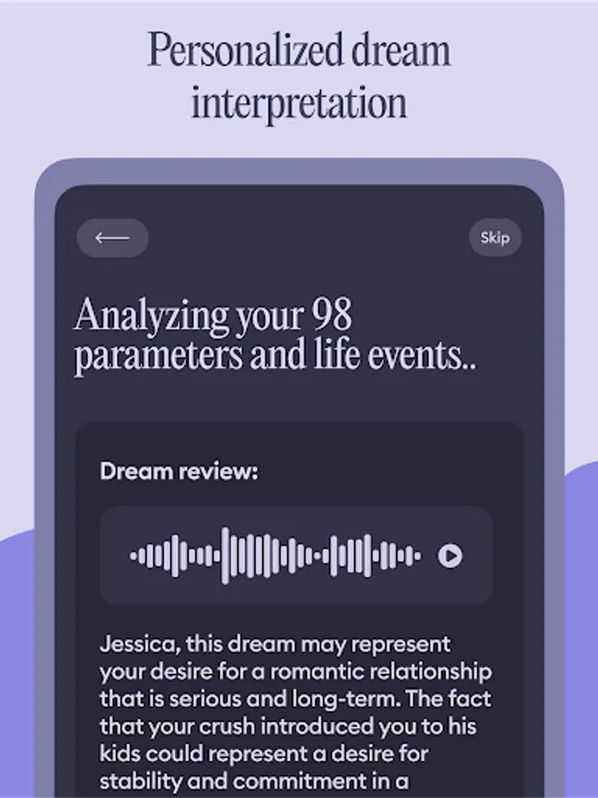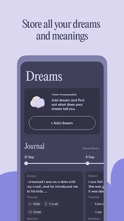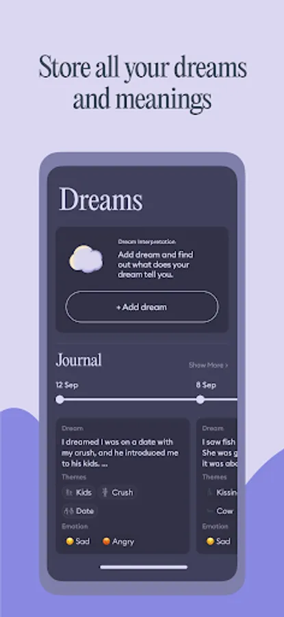 So, what do those strange dreams really mean? With personalized meanings and therapist guidance, get to know your dreams and yourself at a deeper level with DreamApp.