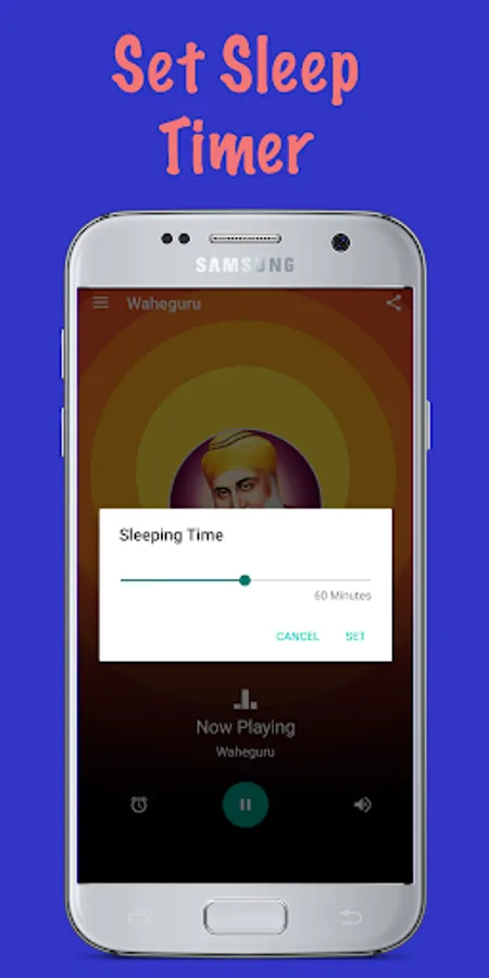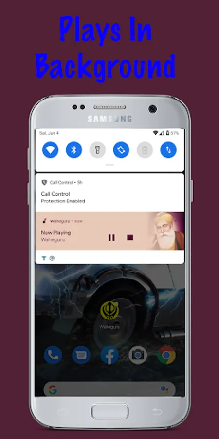 Waheguru Simran will continue to play in background if you may choose to use phone for something else without turning the Waheguru Simran Off.