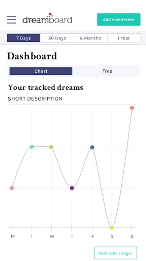 Observe and reflect on mood and emotional trends over time by clicking on the dream graph so you can start to develop a better and deeper understanding of how your dreams fit in to your everyday life.