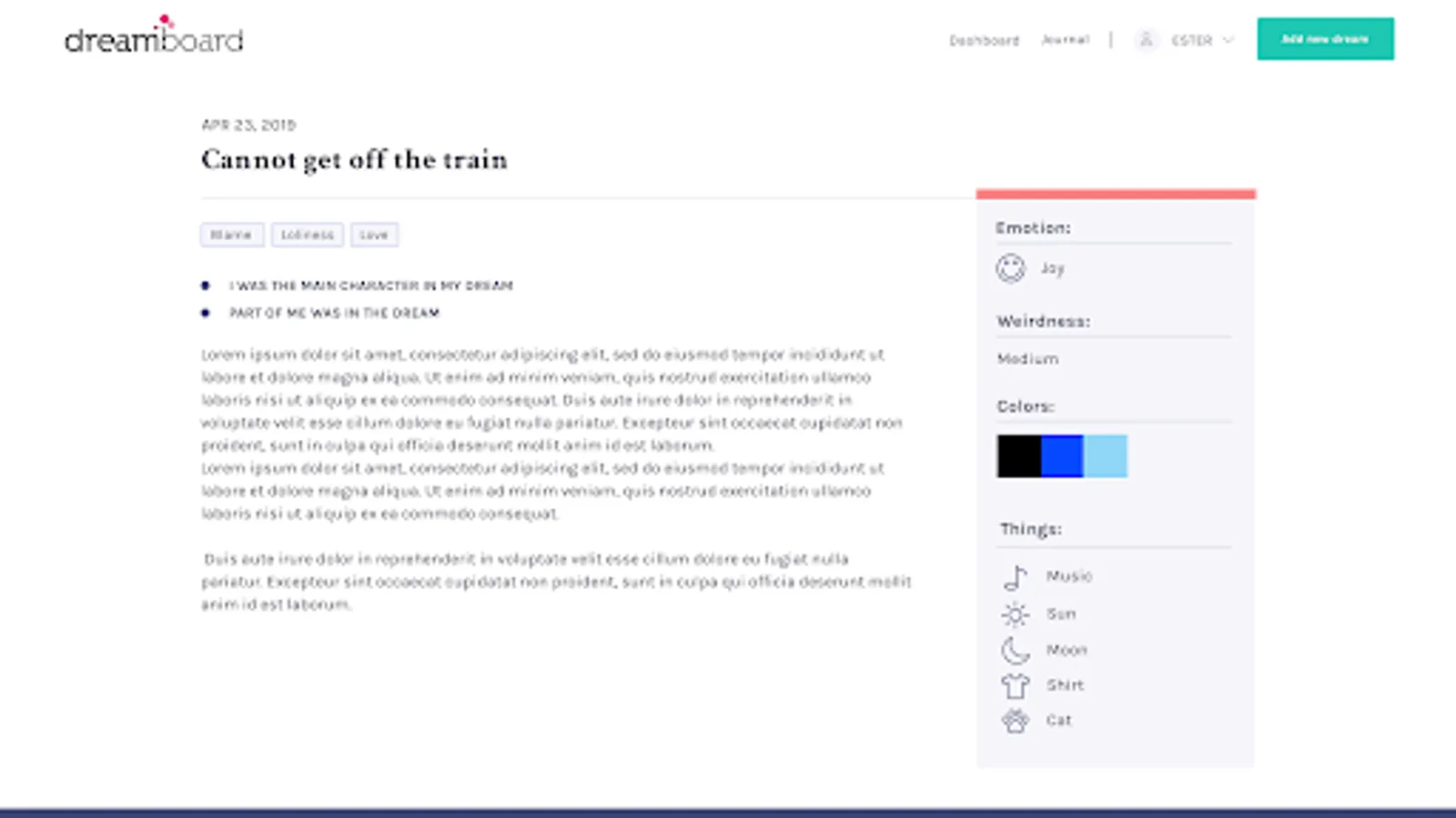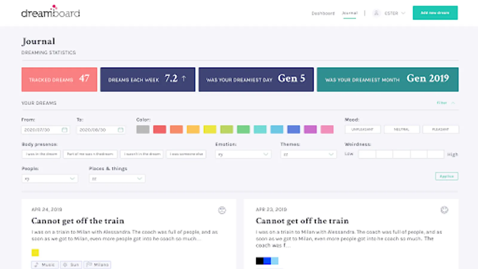 * Dreamboard is a dream journal with interpretation that allow you to track, analyze & record your dreams. Discover the meanings of lucid dreams and nightmares, with sleep tracker analysis. *