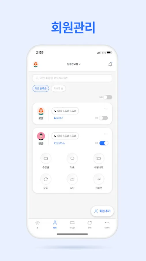 Member's satisfaction increases from member's diet management, exercise record, and exercise class record!