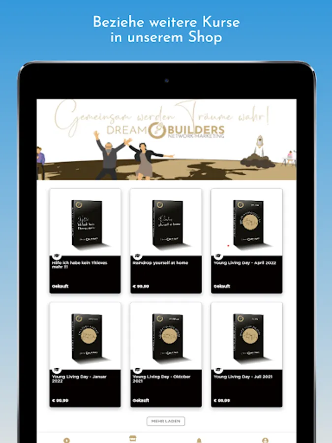 Our Dreambuilders app takes your network marketing business to the next level. Here you will find our current products, such as e-books, online courses and events. The team around Ulli & Vijay is looking forward to your success!