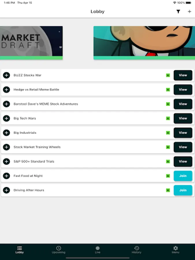 MarketDraft is a stock market simulation platform designed to provide users with stock market trading education, experience and strategy based on a real-life stock market simulated scenario. Contests are designed to promote competition and encourage users to utilize accumulated research, experience and strategy in building their portfolios. In each contest, users have a fake money budget to spend on building their portfolios. At the end of the designated trading day, the users with the most gained or remaining fake cash balance wins the contest.