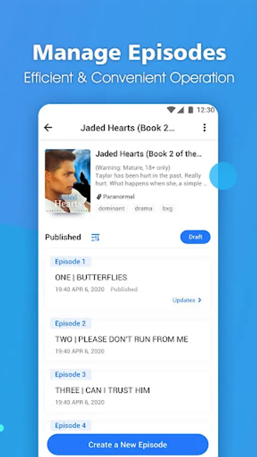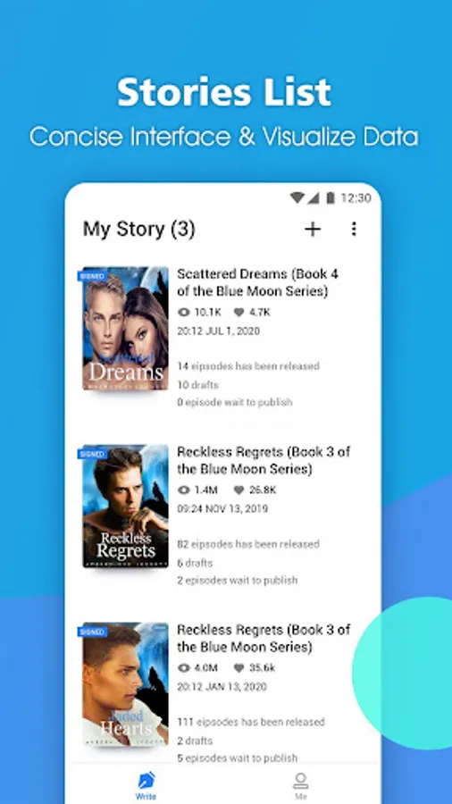 1. Minimal UI designed for writers to easily edit, organize, and publish stories