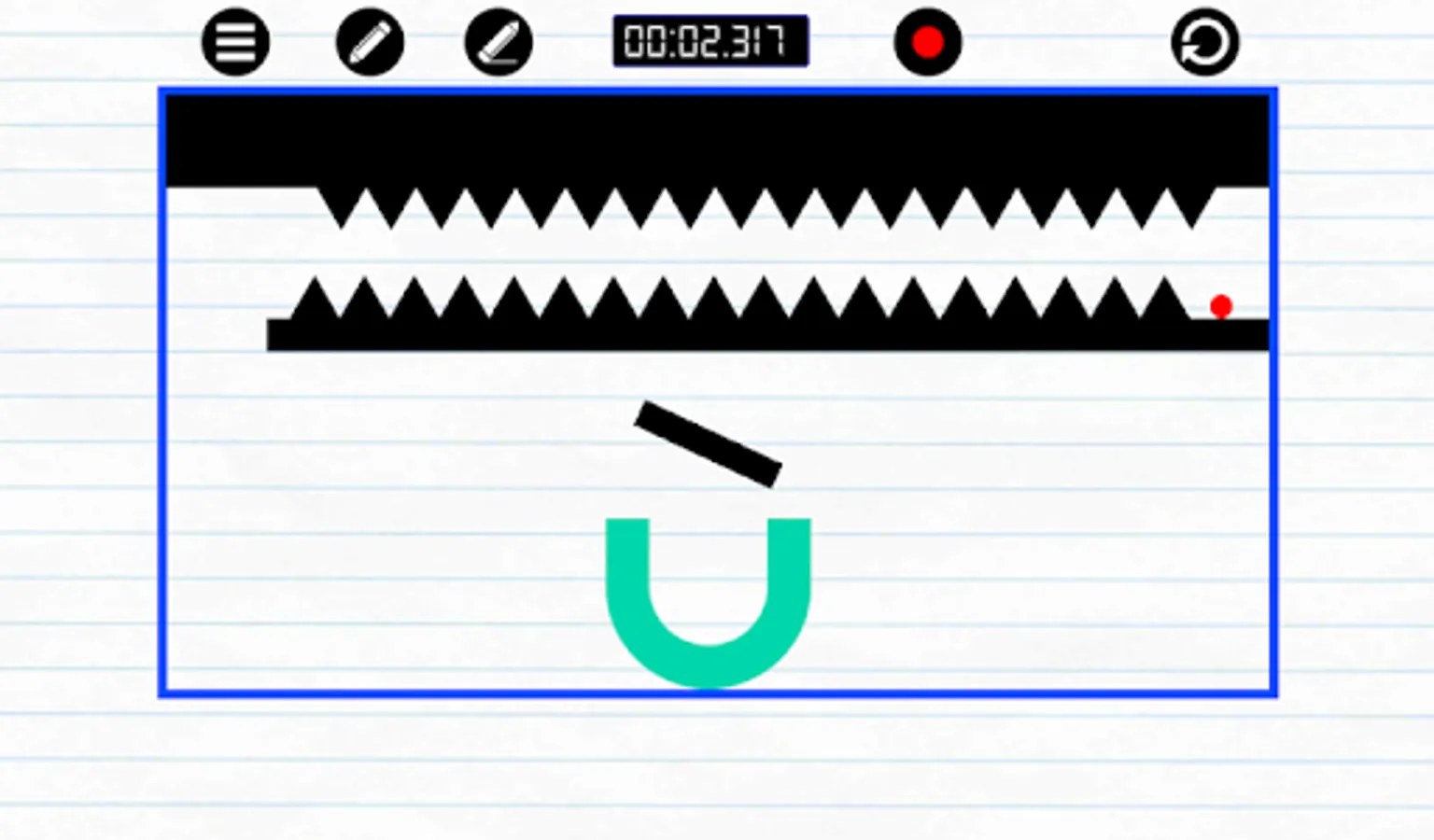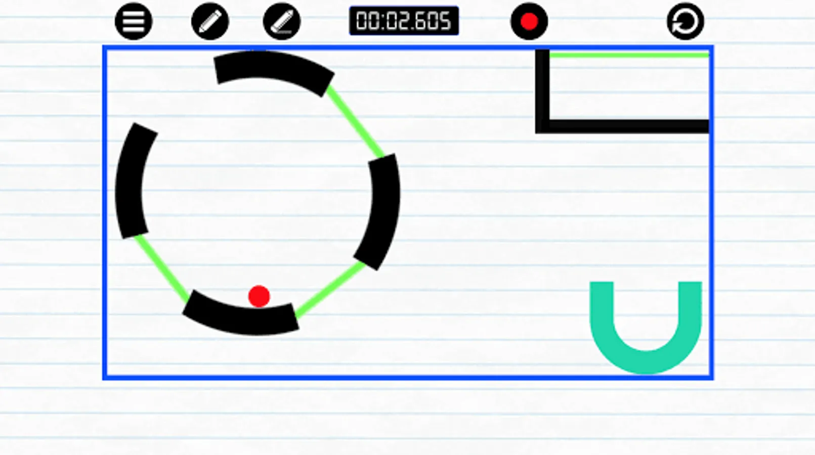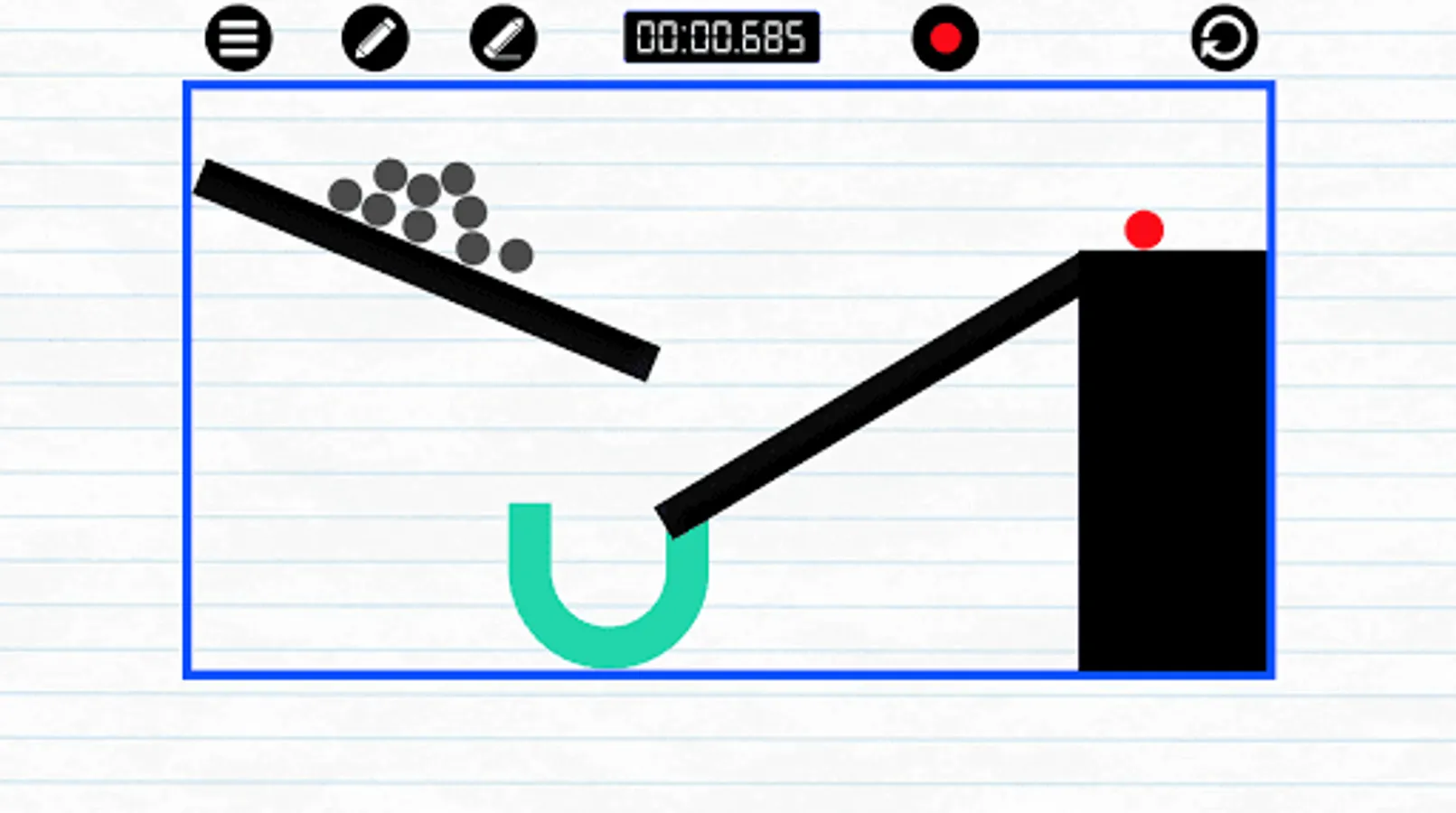 - Beware not to trap the ball between a group of lines; if you get stuck, tap the restart button