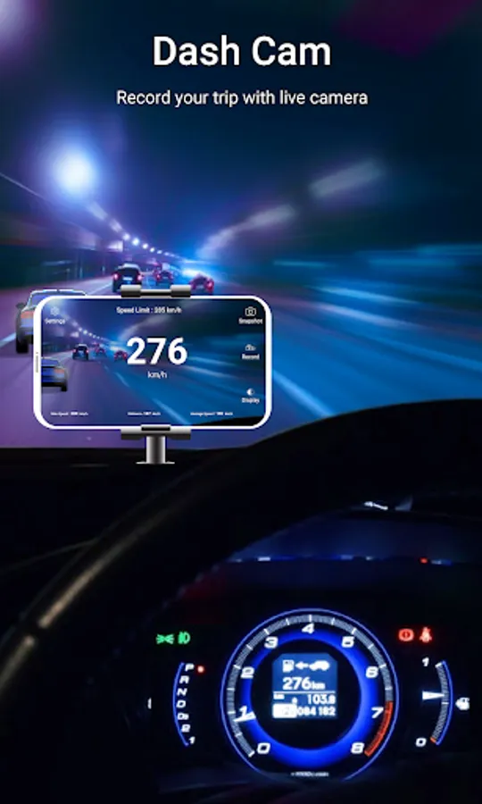 • Digital speed-o-meter and odometer app show DigiHUD with accurate speed test.