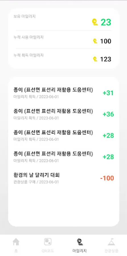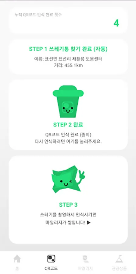 3. If the type of garbage corresponding to the QR code and the type recognized by AI match, mileage is accumulated. The function that can actually use mileage to purchase tour products, etc. will be implemented in the future.