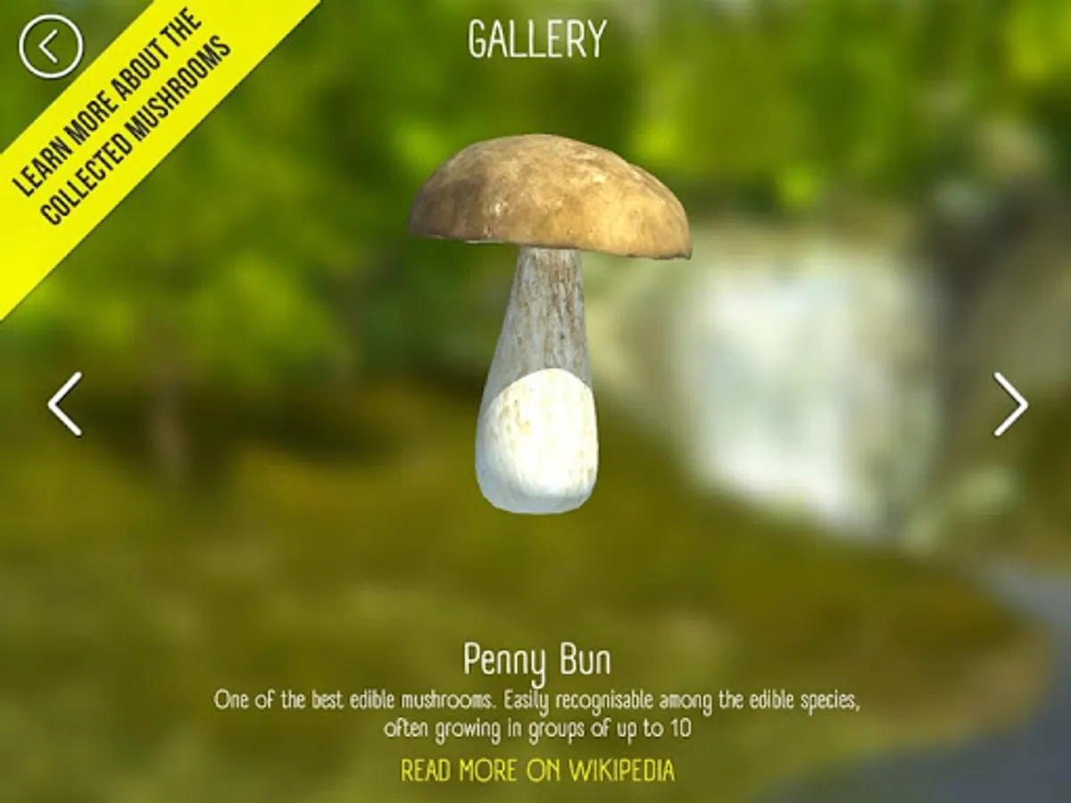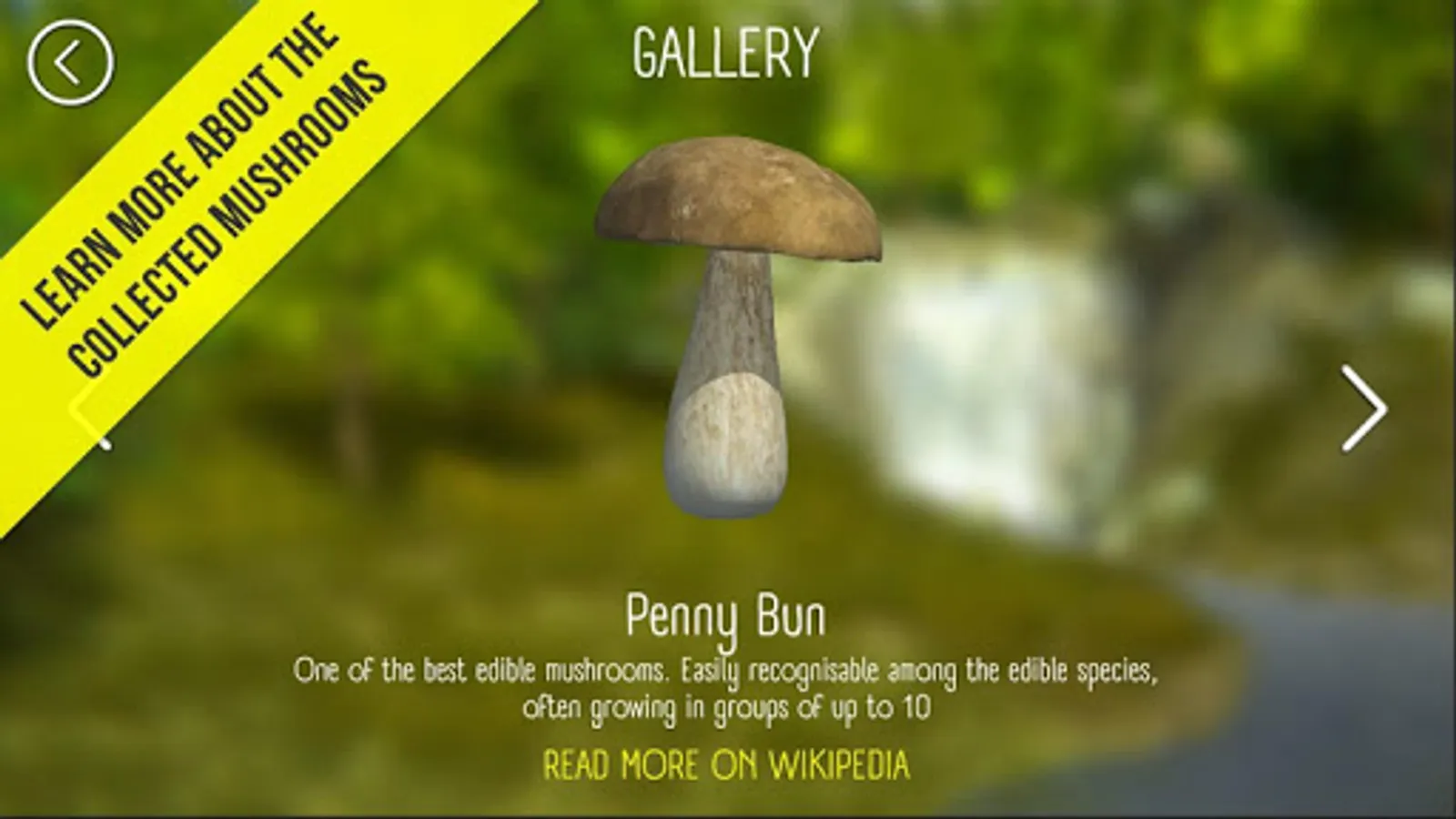 You have an opportunity to enjoy the process of gathering mushrooms thoroughly, to study mushrooms which you have found and feel the atmosphere of a wild forest. Each found mushroom, you can study in the mushroom gallery and discover all needed information about it.