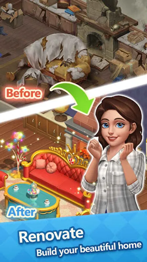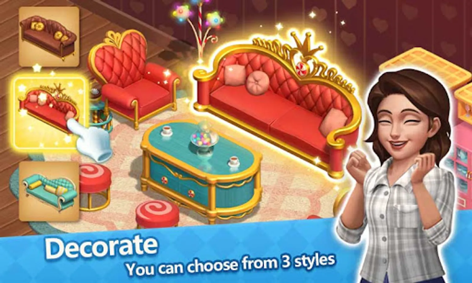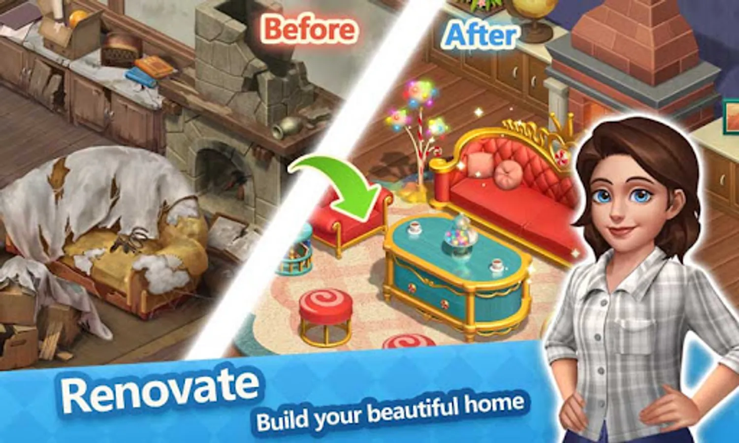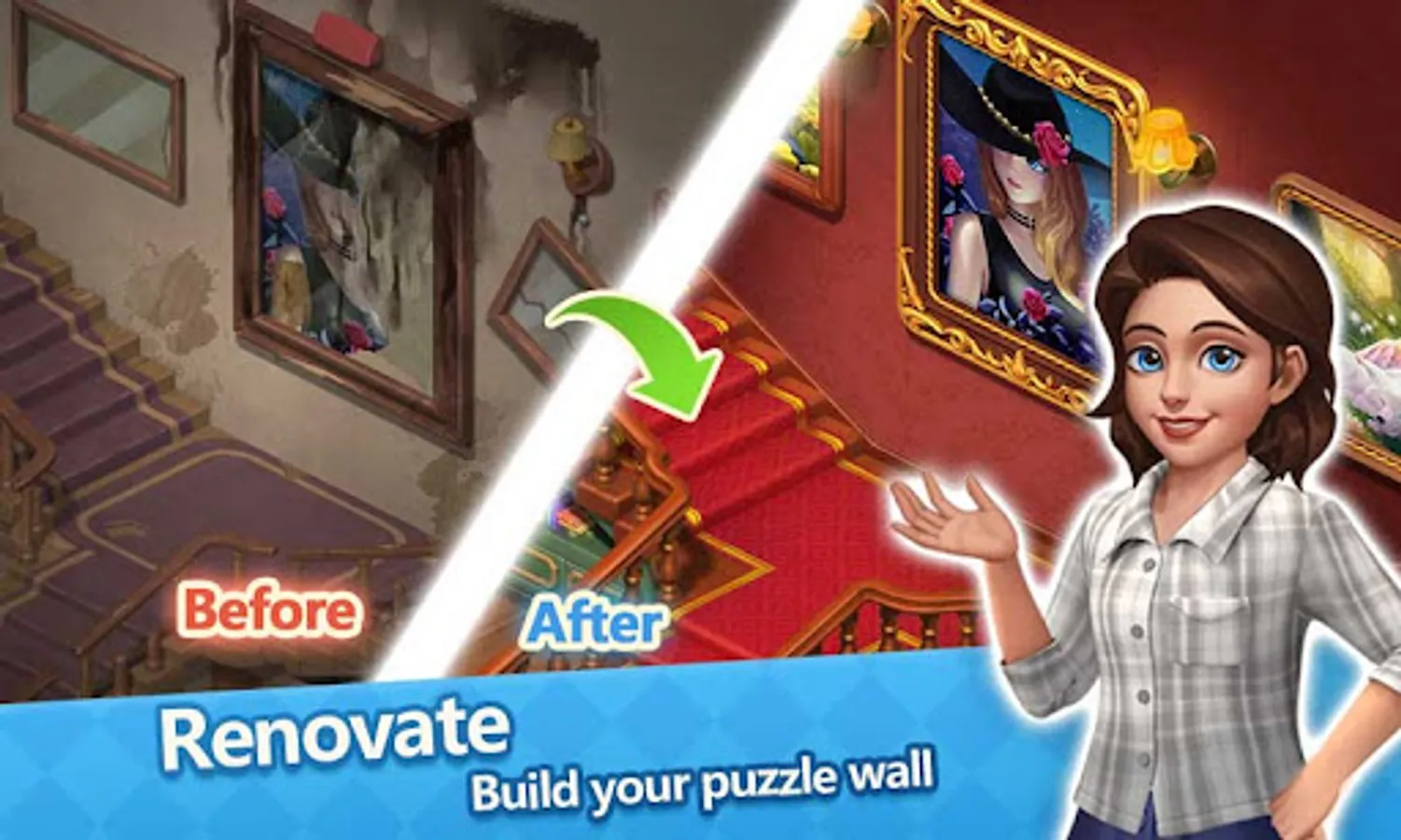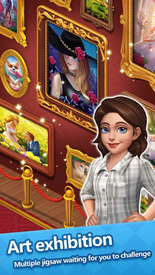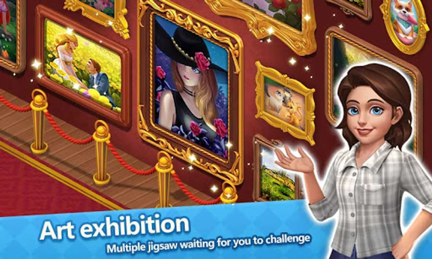 In the bright and sunny gallery, restore rare paintings, start exhibitions to earn gold coins, and design decorations and furniture with Mary.