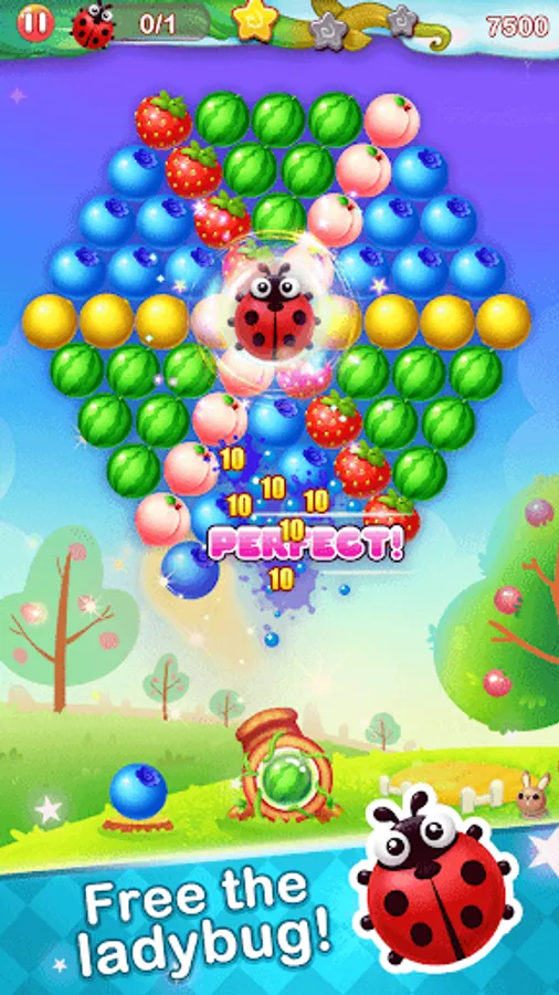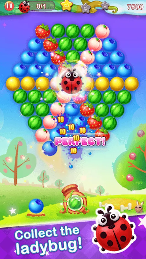 In Ladybugs Rescue Mode, shoot down all the fruits around the Ladybug!