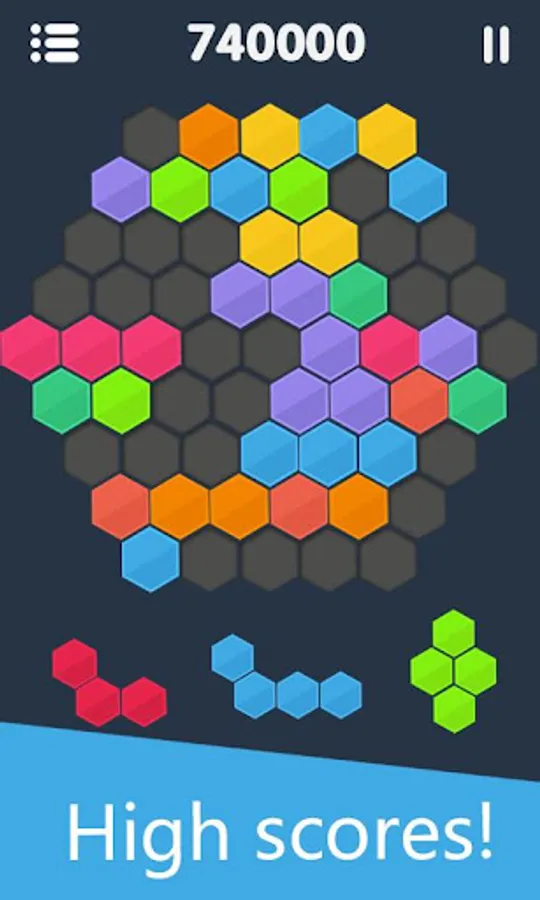 Drag the hex block into the scene, as long as all the small hex blocks combining just full of a straight line, you can eliminate it!