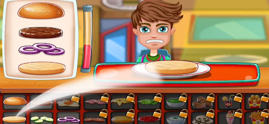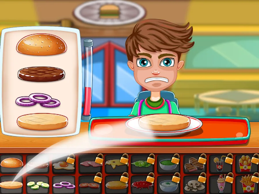 If you are fan of Fun Cooking Games, this food making game will allow you to make your own cooking recipes. Show case your expertise in cooking fast food & burger shop business. Cook many delicious & delightful recipes in little easy steps. You will feel fast food making a fun activity. Use cooking mania kitchen equiped with modern microwaves & baking machines. Create a diverse cuisine menu for cute charachters of food making game. Prepare different type of burgers like hamburger, zinger burger or grill burgers filled with extra mozarilla cheese. Resonate your imagination of cooking burgers & pizza's for fast food lovers. Burger making is a very interesting job in this food cooking game. Burgers and sandwiches are food consisting of one or more cooked patties of ground meat. Usually, beefsteak or petty, placed inside a sliced bread or sandwich or bun. These are often served with cheese and lettuce. You can onion and pickles to make it tastier.