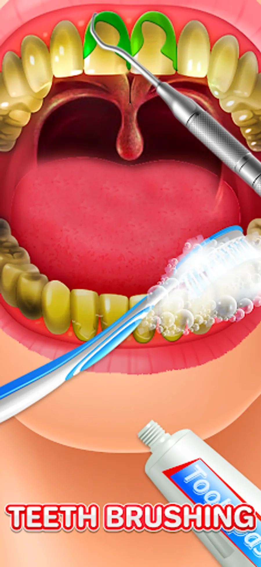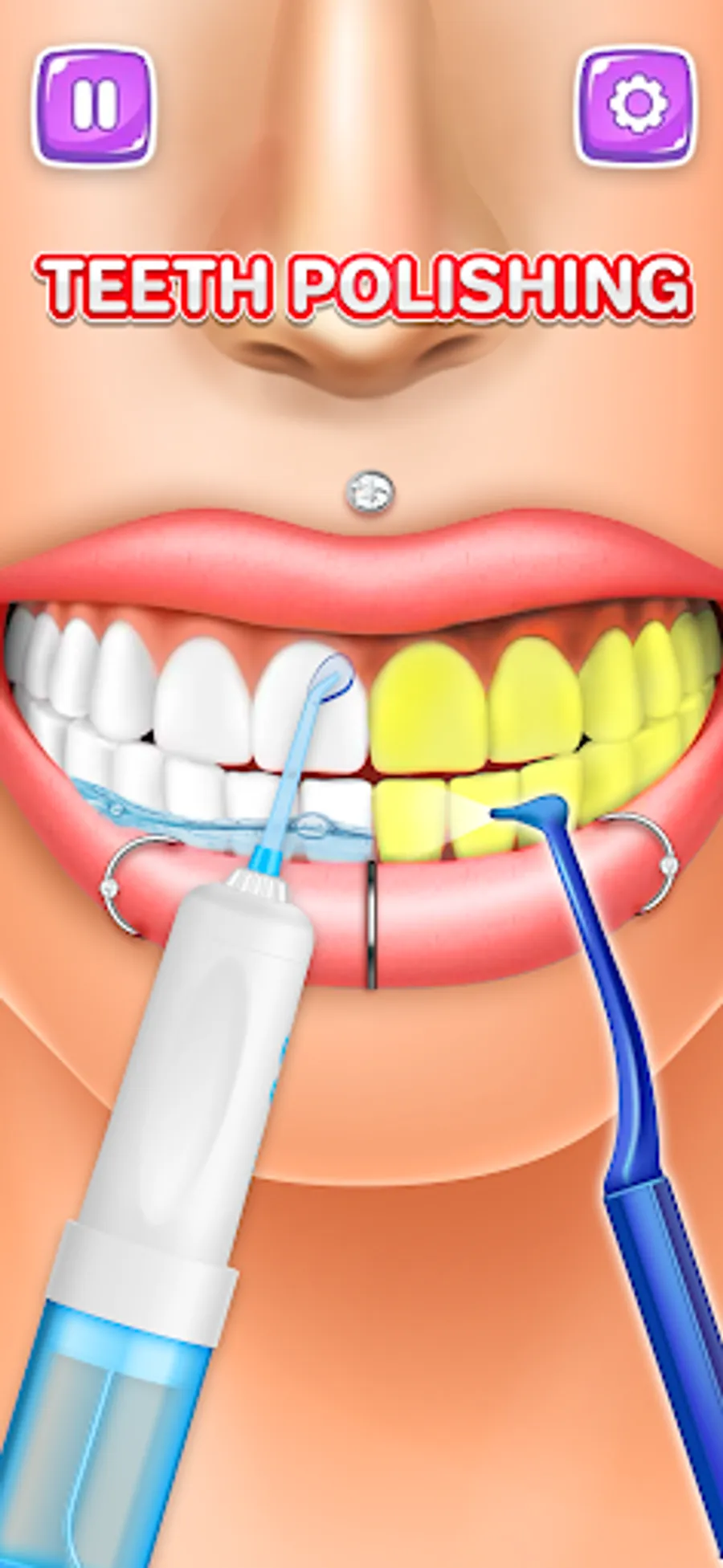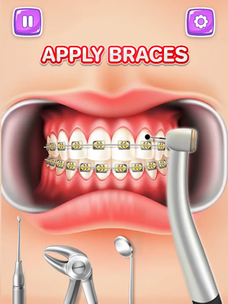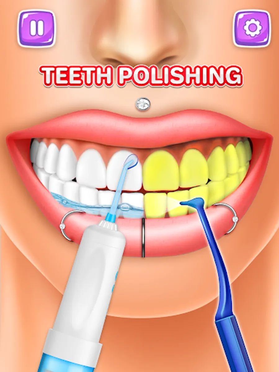 - Use dental care clinic instruments to perform dental surgery in teeth care games.