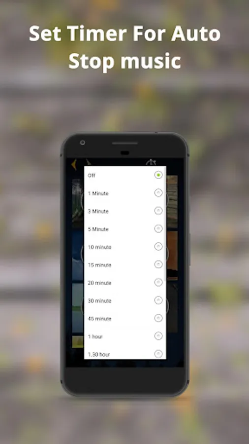 ☺ You can also set timer for auto off sound which is help in if your sleep by this sound , music will automatically stop when timer is finished.