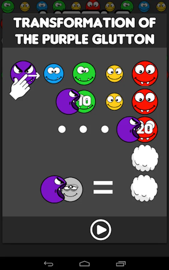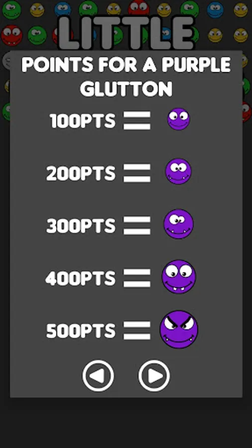 - Get 500 points to collect a new Purple glutton, the only one able to eat Grey gluttons.