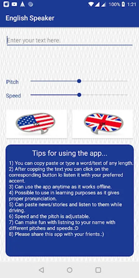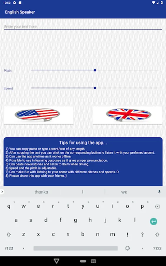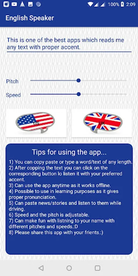 This app speaks out whatever the text of any length which is typed or pasted by the user.