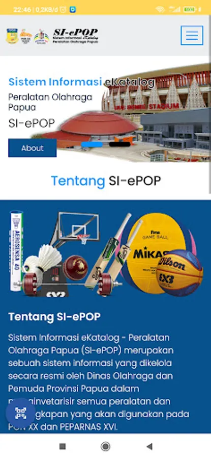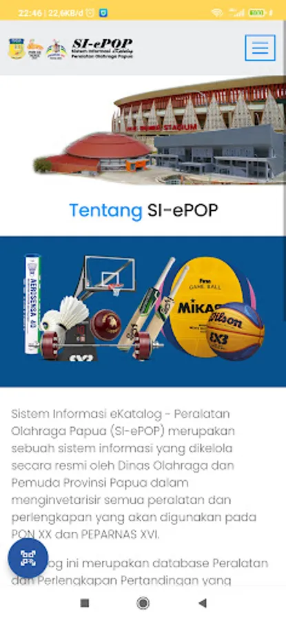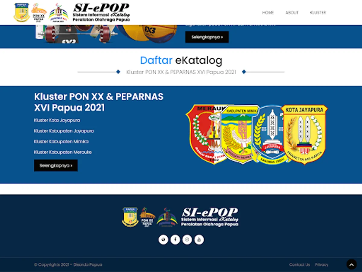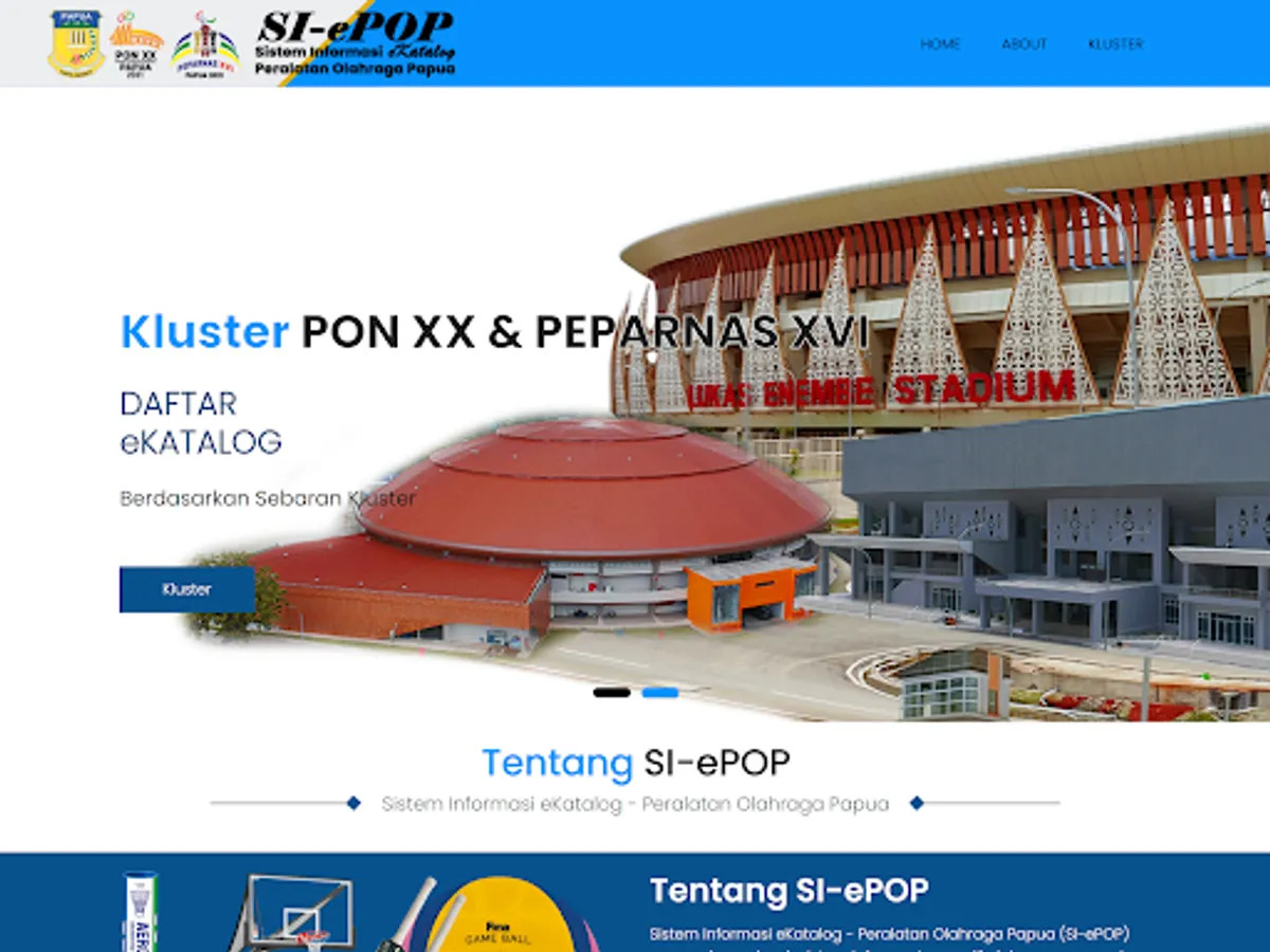 Information System - Papuan Sports Equipment eCatalog (SI-ePOP) is an information system that is officially managed by the Papua Province Youth and Sports Office in making an inventory of all equipment and supplies that will be used in PON XX and PEPARNAS XVI.