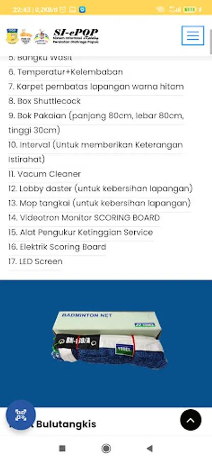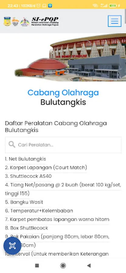 This eCatalog is a database of Match Equipment and Equipment spread across various venues for PON XX Papua and PEPARNAS XVI Papua 2021.
