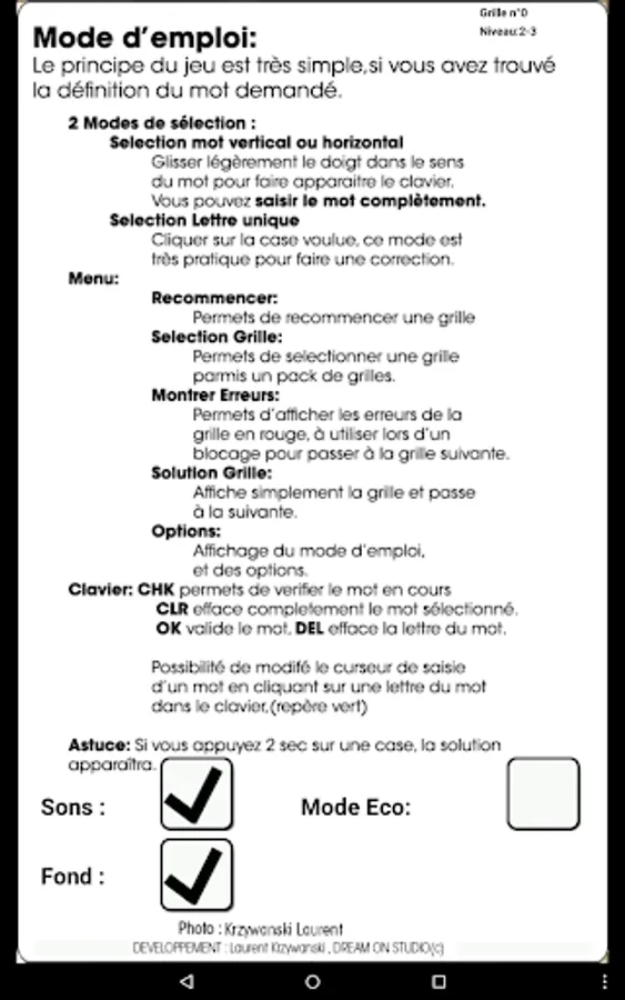 Grid size 8 * 13, zoom capability on the definition, ergonomic use (by sliding your finger vertically or horizontally on the word place)