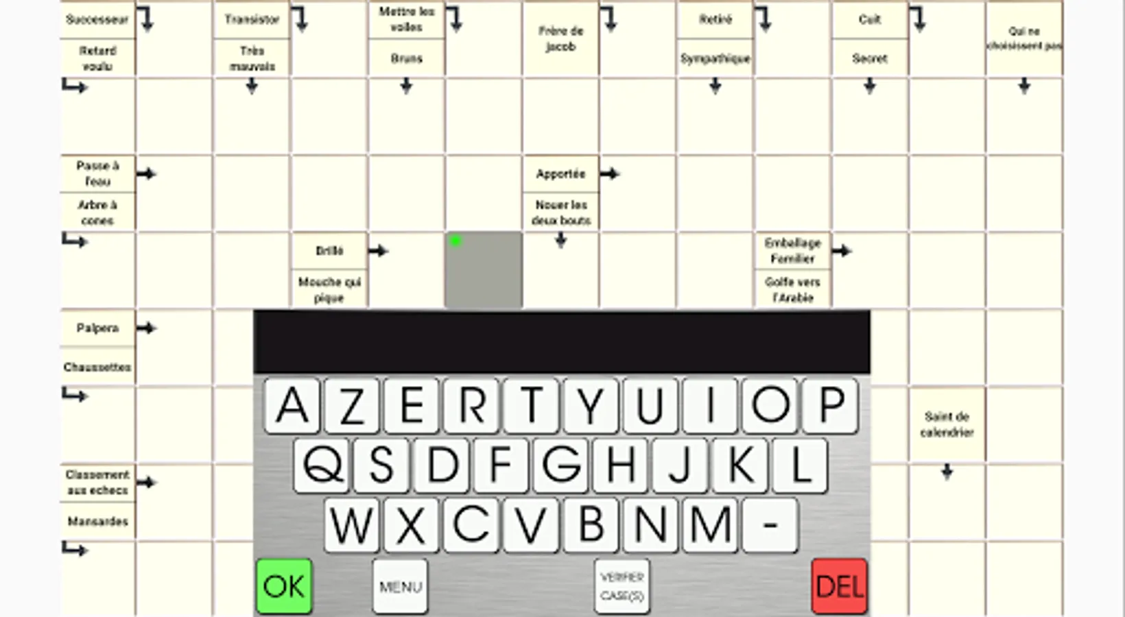 Size of the grid 13 * 8, possibility of zooming on the definition, ergonomic use (by sliding the finger vertically or horizontally on the word to place)