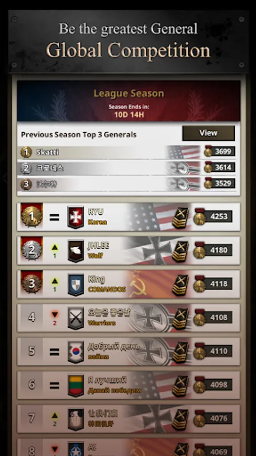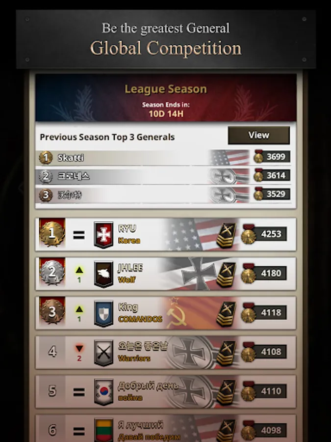 ● You can gain or lose Rank Points by each Battle Victory or Defeat. Dive into a global competition with players around the world to become the greatest General in the world!