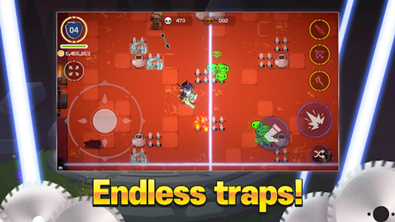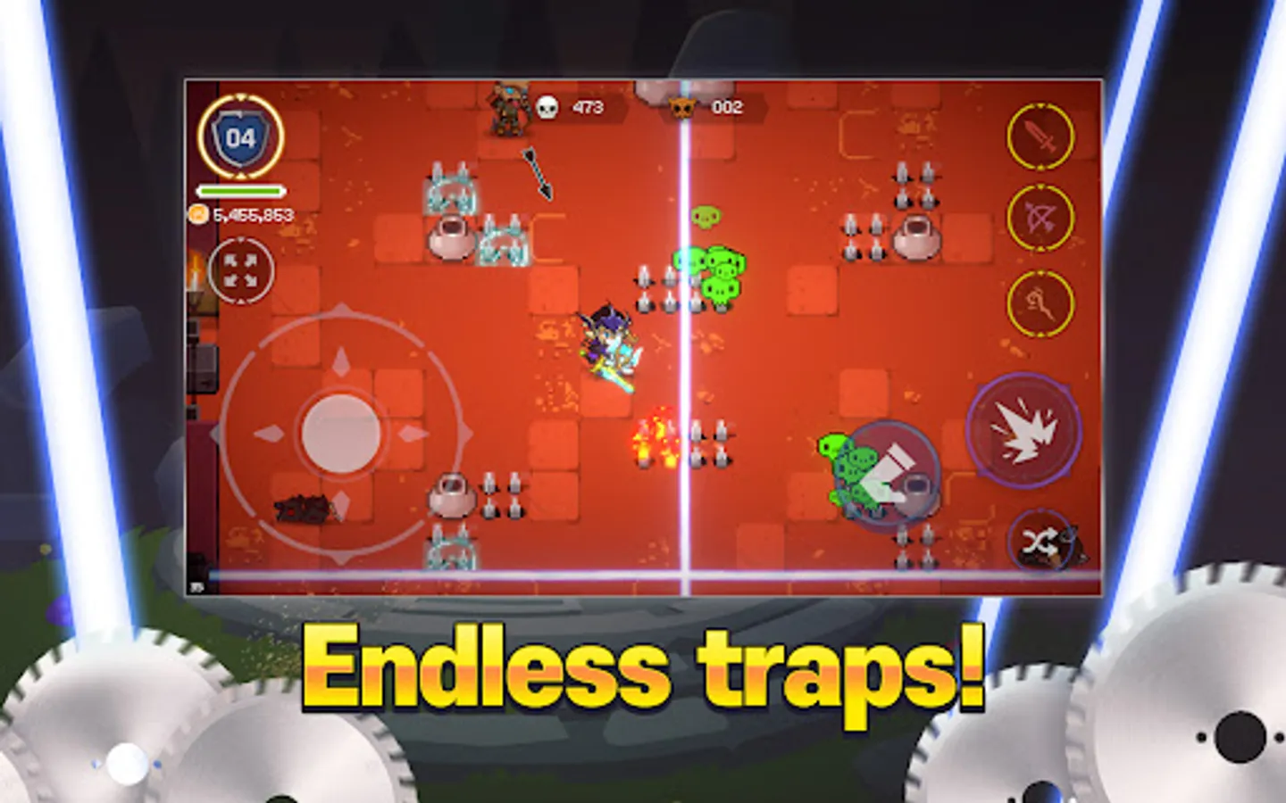 Experience thrilling battles with traps such as falling, poison, electric shock, burn, and laser!