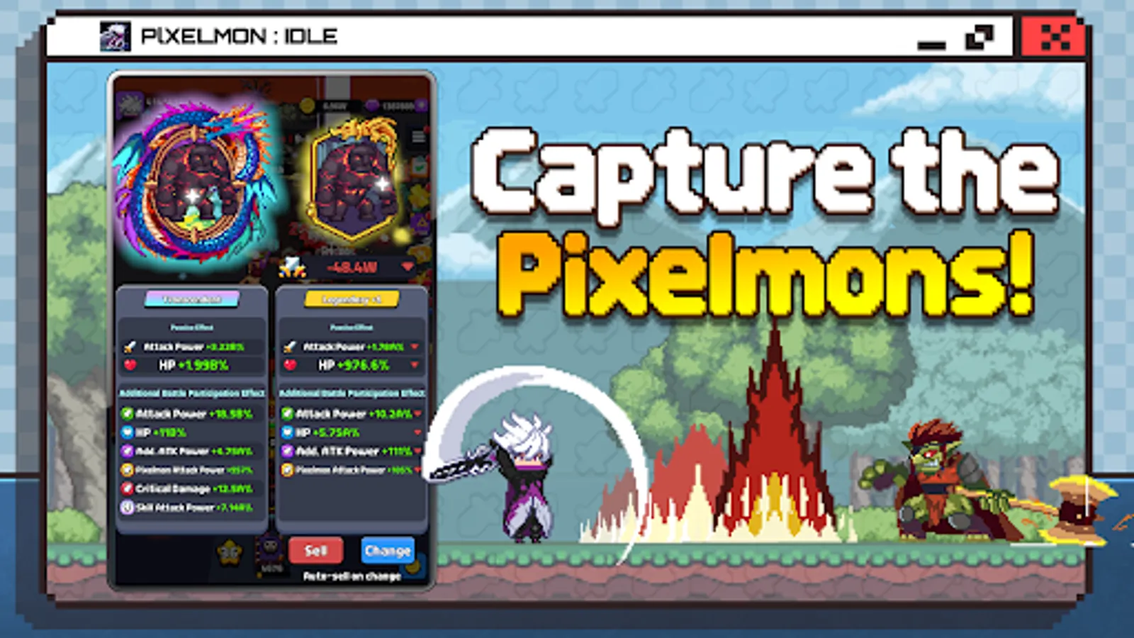 - Endlessly upgrade your Pixelmons, equipping them with a variety of gear and skills to make them even more powerful.