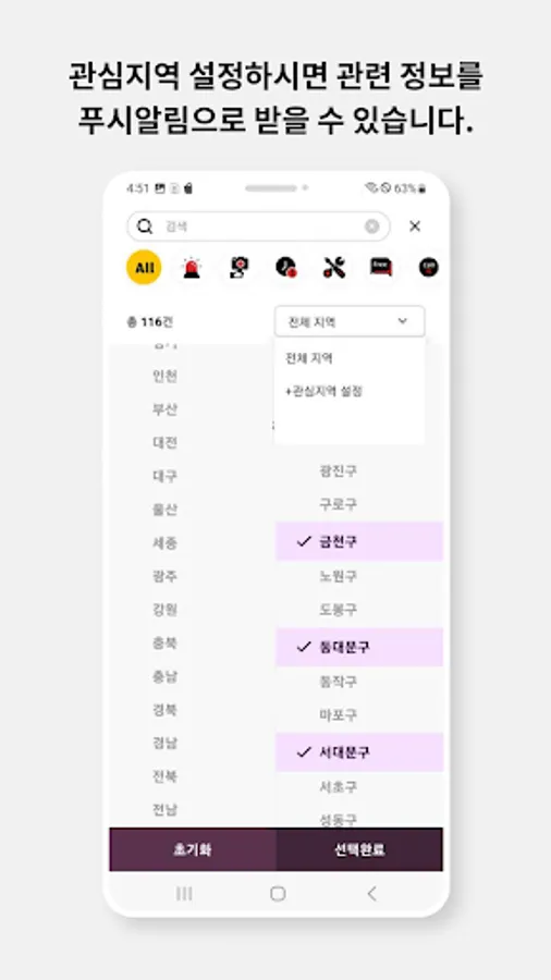If you select a region of interest, a push notification will notify you when you register for reporting in that region.
