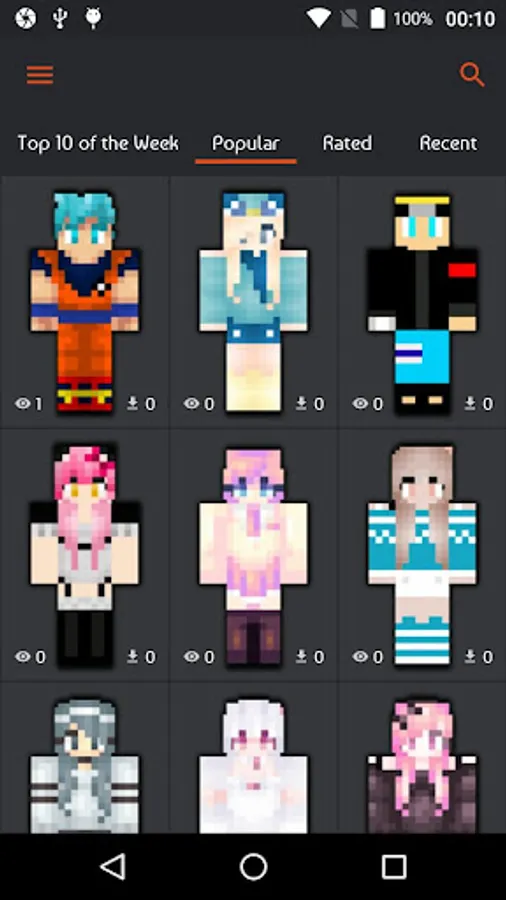 Anime Skins for Minecraft PE is amazing skin app. Here you can get many skins from Minecraft username. Download and Apply Anime Skins all for free!