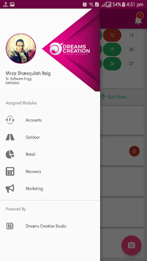 Dreams Vision App is part of "DreamsVision ERP" Designed and Developed by Dreams Creative Studio for Dreams Creation Advertising Pvt Ltd.