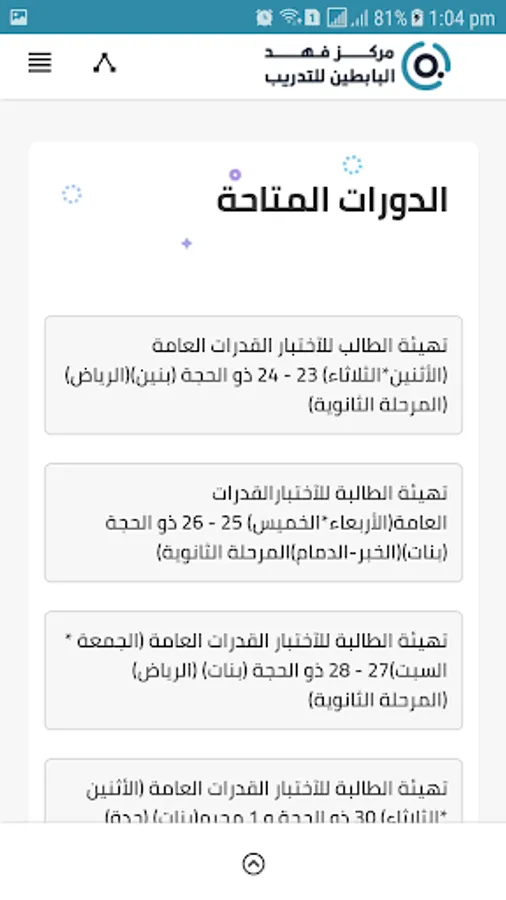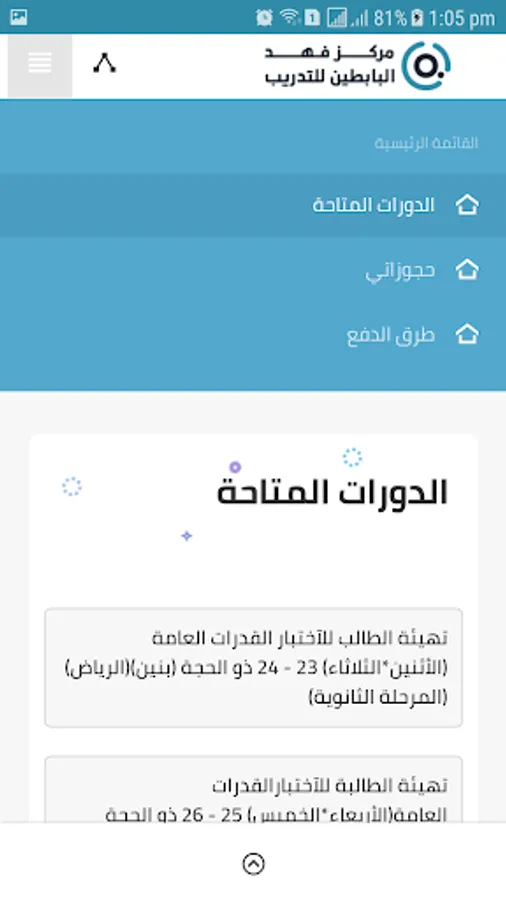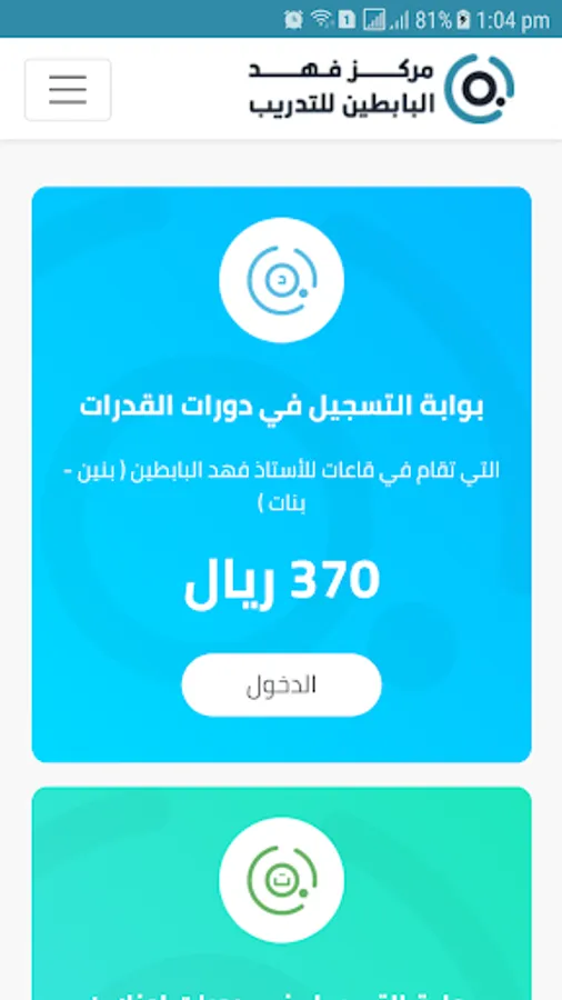 The unified portal for registration in Fahd Al-Babtain's courses in the courses of measurement and online courses and training tests