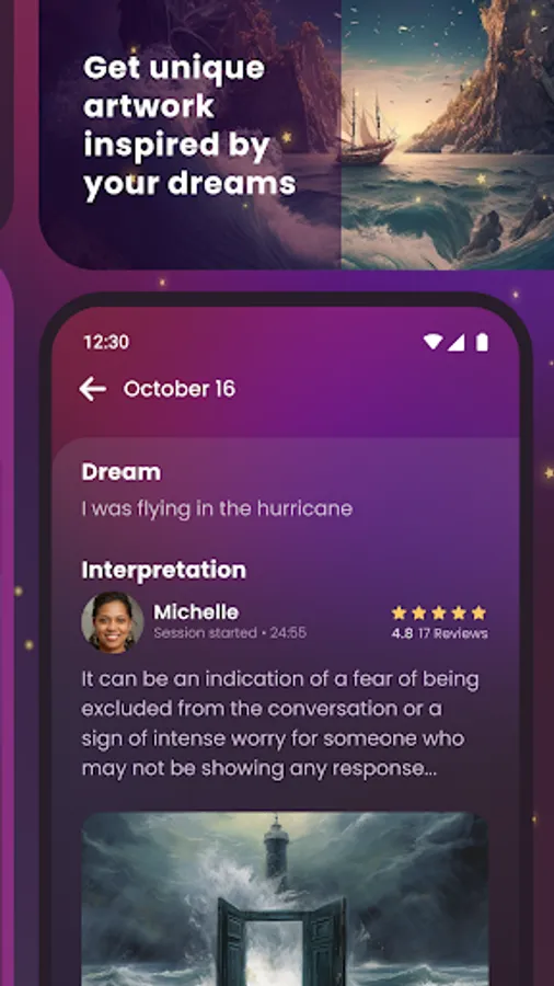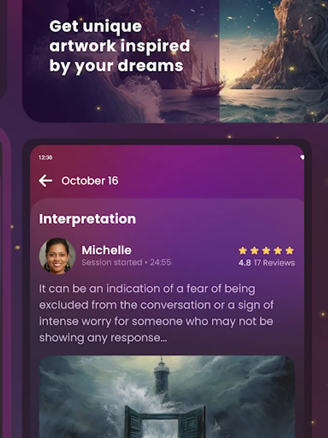 "Incredible app! I've always been curious about my dreams, and DreamsBook has helped me understand them so much better. Plus, the unique artwork inspired by my dreams is just stunning!"
