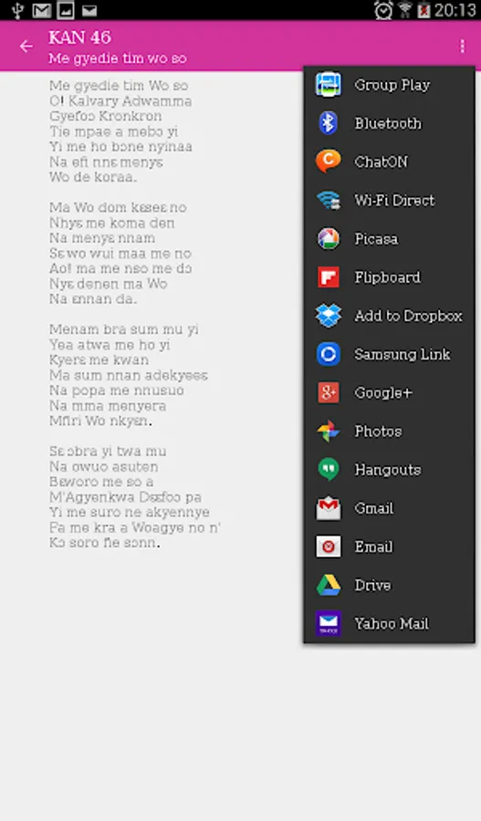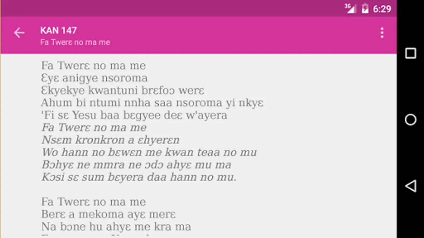 No more need to memorize the songs as the songs can easily be read from your Android phone or tablet. No more need to take your hymn book along so long as you have you mobile phone or tablet.
