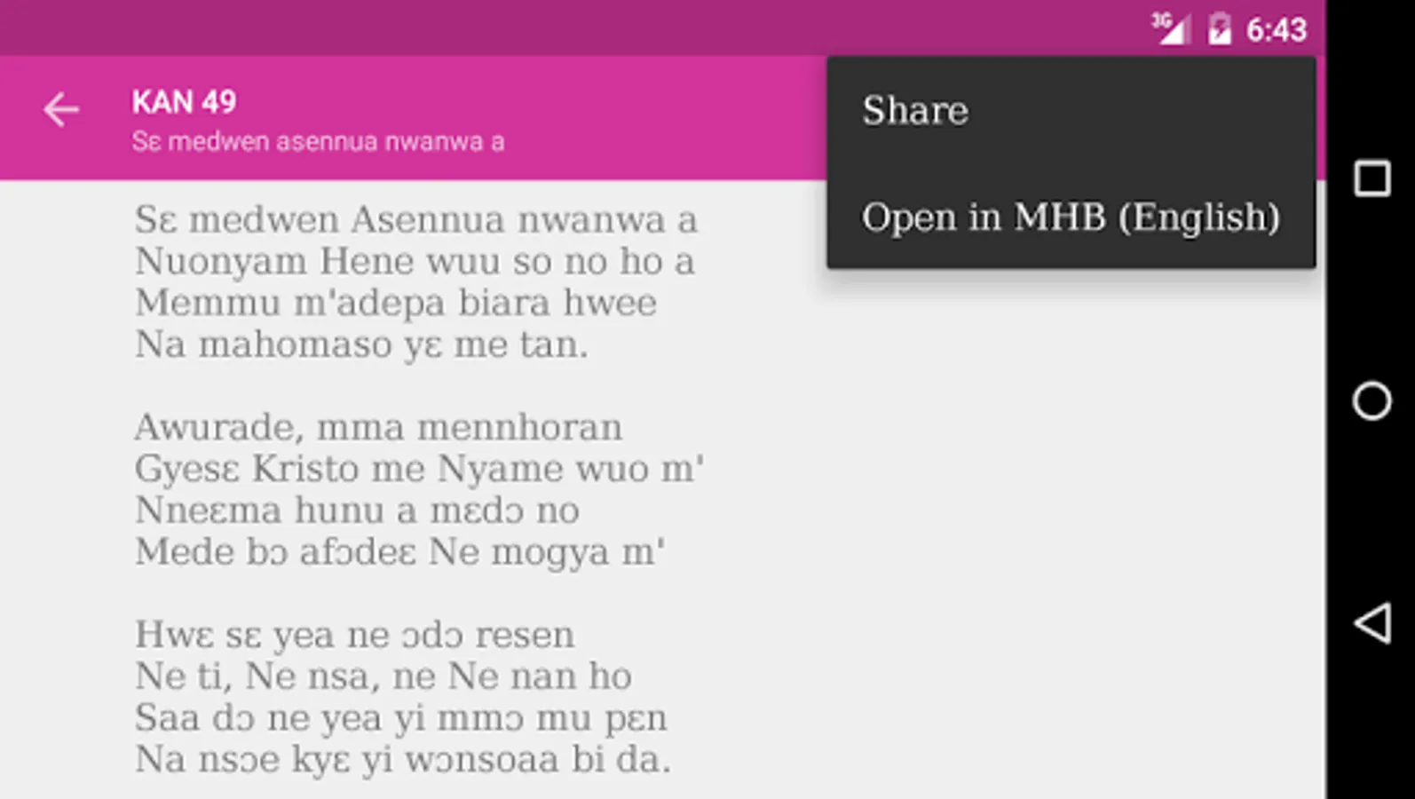 To get to a hymn, just enter the hymn number and the hymn will show up on your Android device.