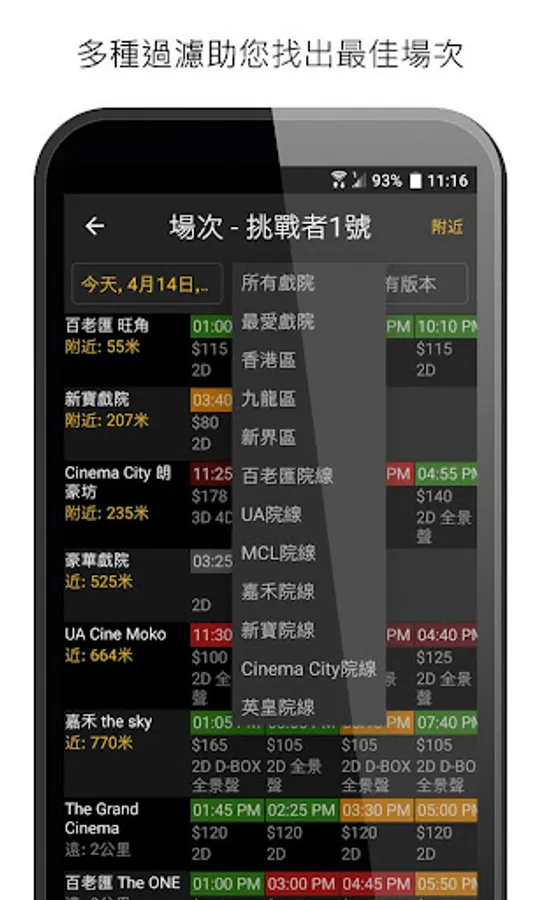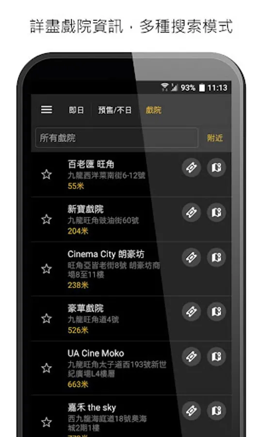 Including all major theater lines and independent theaters in Hong Kong, providing filtering methods for nearby theaters, theater lines, regions, etc. You can add your favorite theaters to your favorites and display them preferentially when viewing the show.