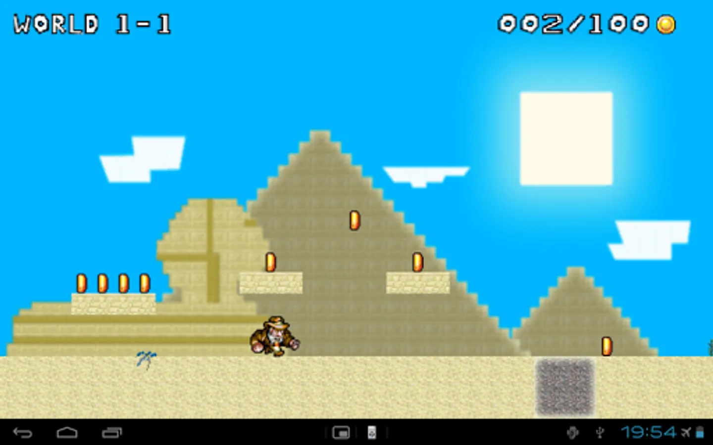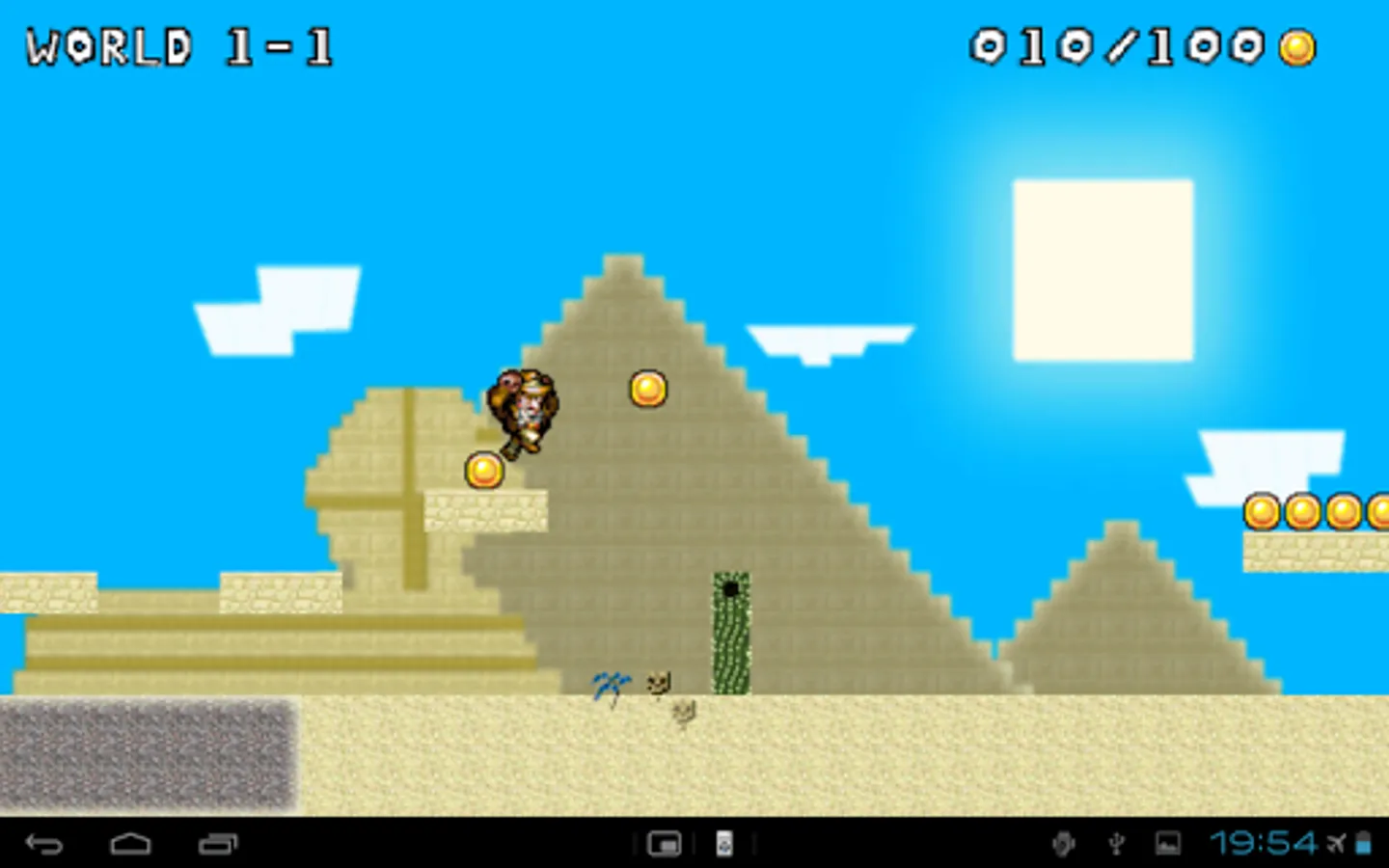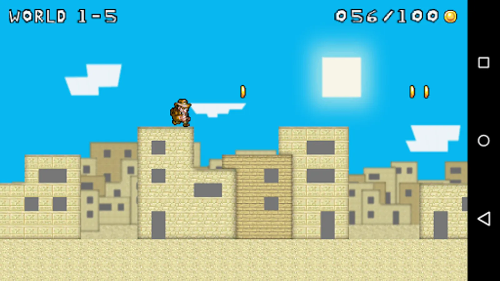 There are nine different levels. Each level has 100 coins to collect. Run and jump through the desert. Search for coins in Egypt. Old man Indy is on his first adventure. If you like this game please leave us a comment. We're looking forward to support this app. We plan to create new worlds and lots of level and not just in Egypt. So let us know if the game is worth extra work.