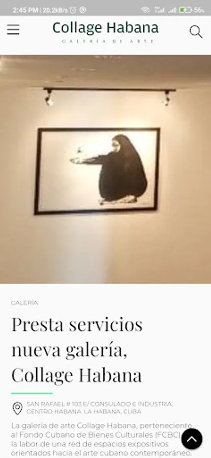 Since 2004, Collage Habana is the gallery that leads the promotion and commercialization of Visual Arts within the company Fondo Cubano de Bienes Culturales. Under his direction, a group of galleries with different profiles operate, among which are Galiano Gallery, Artis 718 Gallery, Casa8 Gallery, 23 and 12 Gallery and Origins Gallery. Through this network of galleries, a diverse group of Cuban creators is brought together, from national awards such as Manuel Mendive and Roberto Fabelo, to new artists, who make themselves known every year in the Post-it contest, designed for emerging creators. Thus, from its projects and exhibitions, Collage Habana shows the aesthetic plurality of Cuban art.