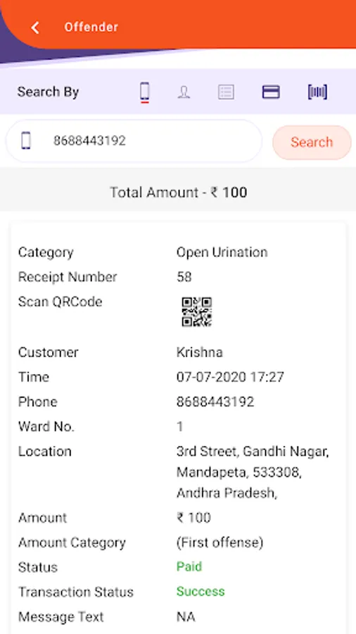 Introduced to collect all types of fines and user charges for garage collection in digital mode for better transparency and accountability. Fines for violators of Swachh Kandukur by-laws and user fee from waste generators towards garbage collection
