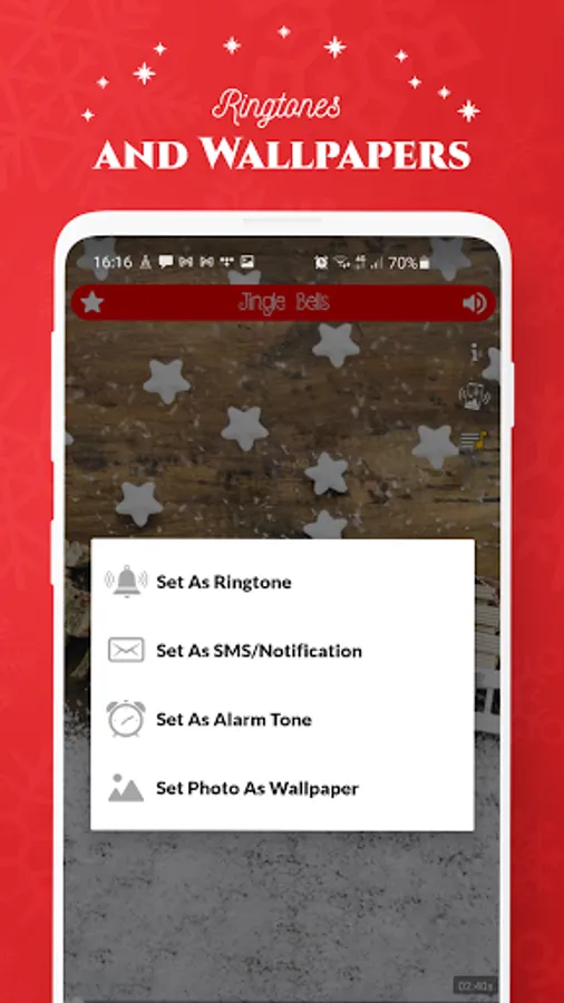 Set your favorite Christmas carol as a ringtone or notification and enter of yourself and your loved ones in the festive mood whenever your phone rings.