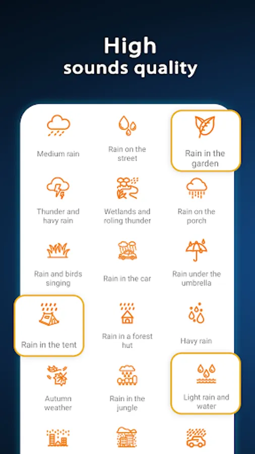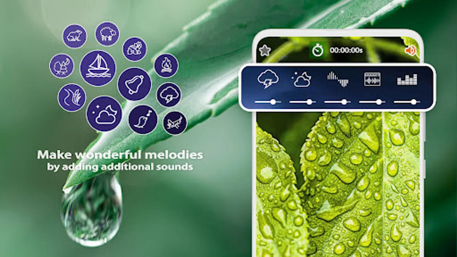 ● mixing the sounds of rain with other relaxing and calming sounds,