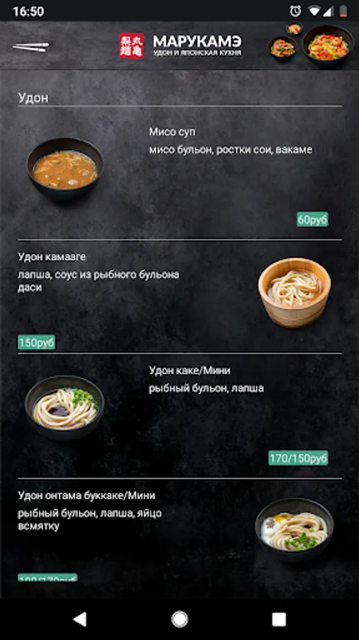 В наших ресторанах все блюда готовятся на открытой кухне, что позволяет каждому гостю проследить весь процесс готовки, начиная с добавления в муку воды и соли и заканчивая уже готовым изумительным блюдом. Соблюдая принцип открытости, нам и удалось развить направление «Мару». Мы тщательно выбираем все продукты и ингредиенты, большинство из которых импортируются напрямую из Японии. Готовя каждое наше блюдо и вкладывая в него всю нашу любовь и страсть к японской кухне, мы, изо дня в день совершенствуемся и стремимся к достижению идеального вкуса. Благодаря тому, что мы придерживаемся этих правил, нам удается передать гостям истинный традиционный вкус японской лапши удон.