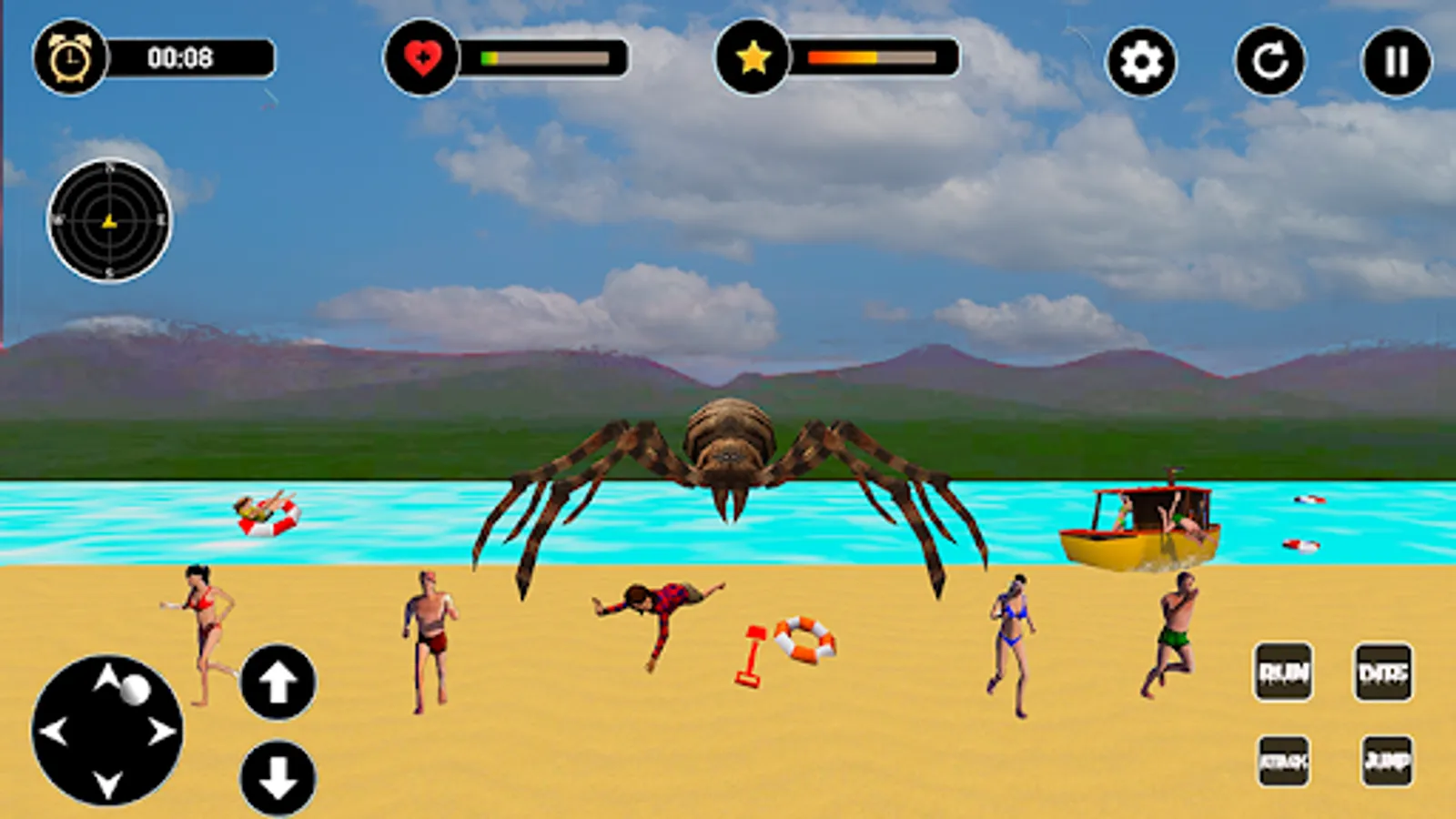 Use the control buttons appearing on the screen to regulate the movement of the Giant Spider . There are action buttons available on screen as well that will help the snake to attack people and hunt them. The real challenge in this game is to beat the clock. It is important to keep a tab of time as running out of it will result in the level fail. Furthermore, another challenge is to protect you while attacking the enemies. Hunters, animals, and other human will try and attack snake. Your job will be to protect yourself while hunting them and completing the mission.