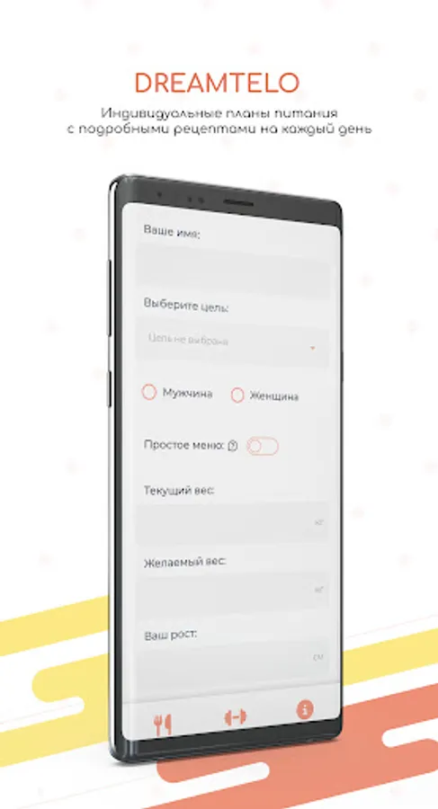 Dreamtelo - individual nutrition plans for every day, training programs with your own weight.