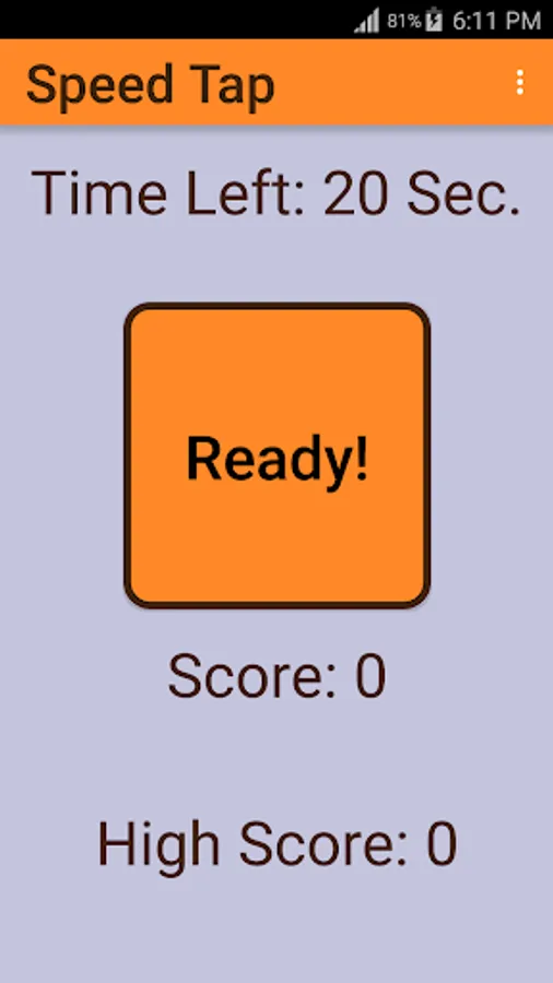 Speed Tap tests how fast you can press a button. You get 20 seconds to see how many times you can mash the button. Compete against yourself to see if you can improve and beat your high score.