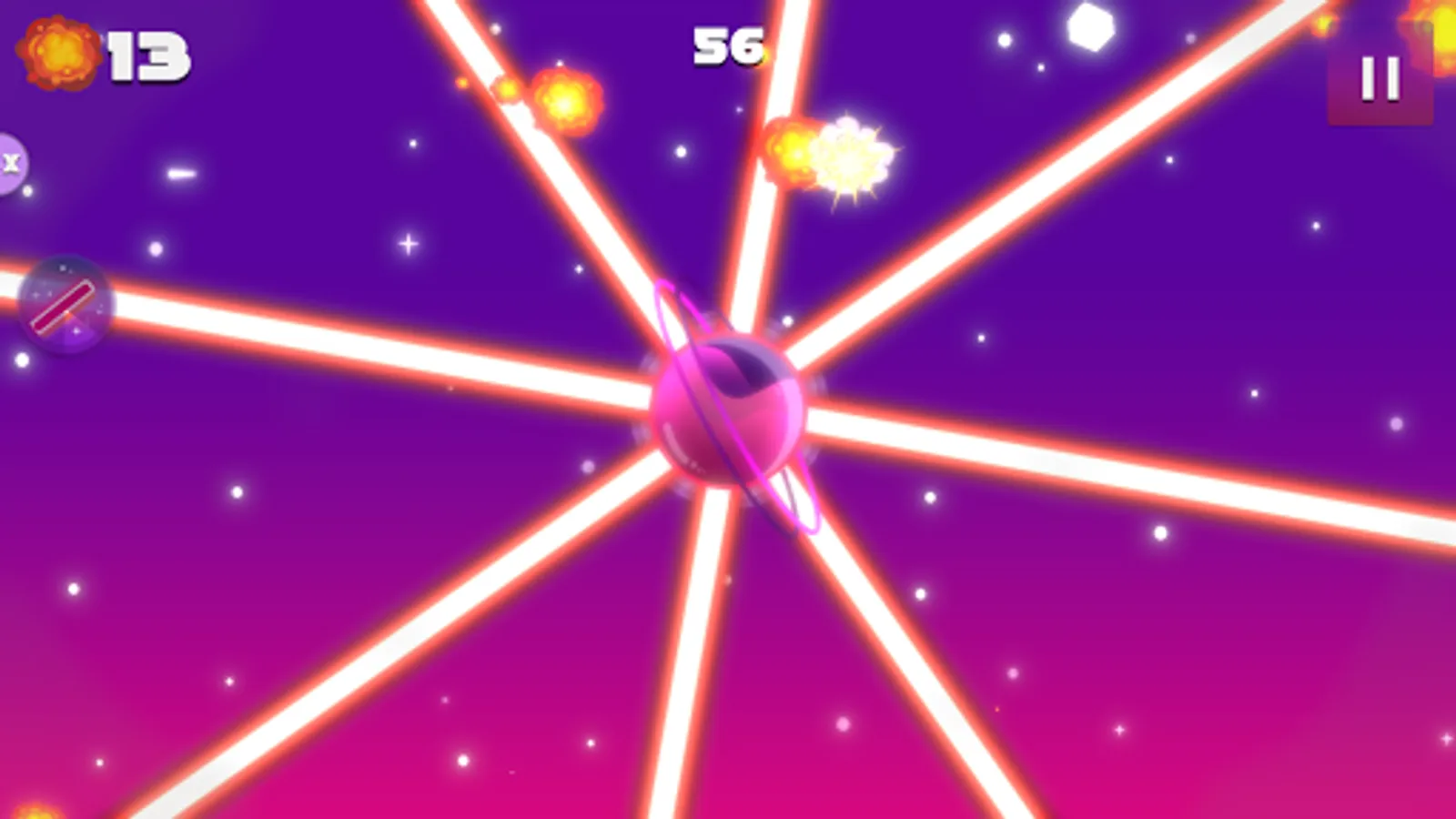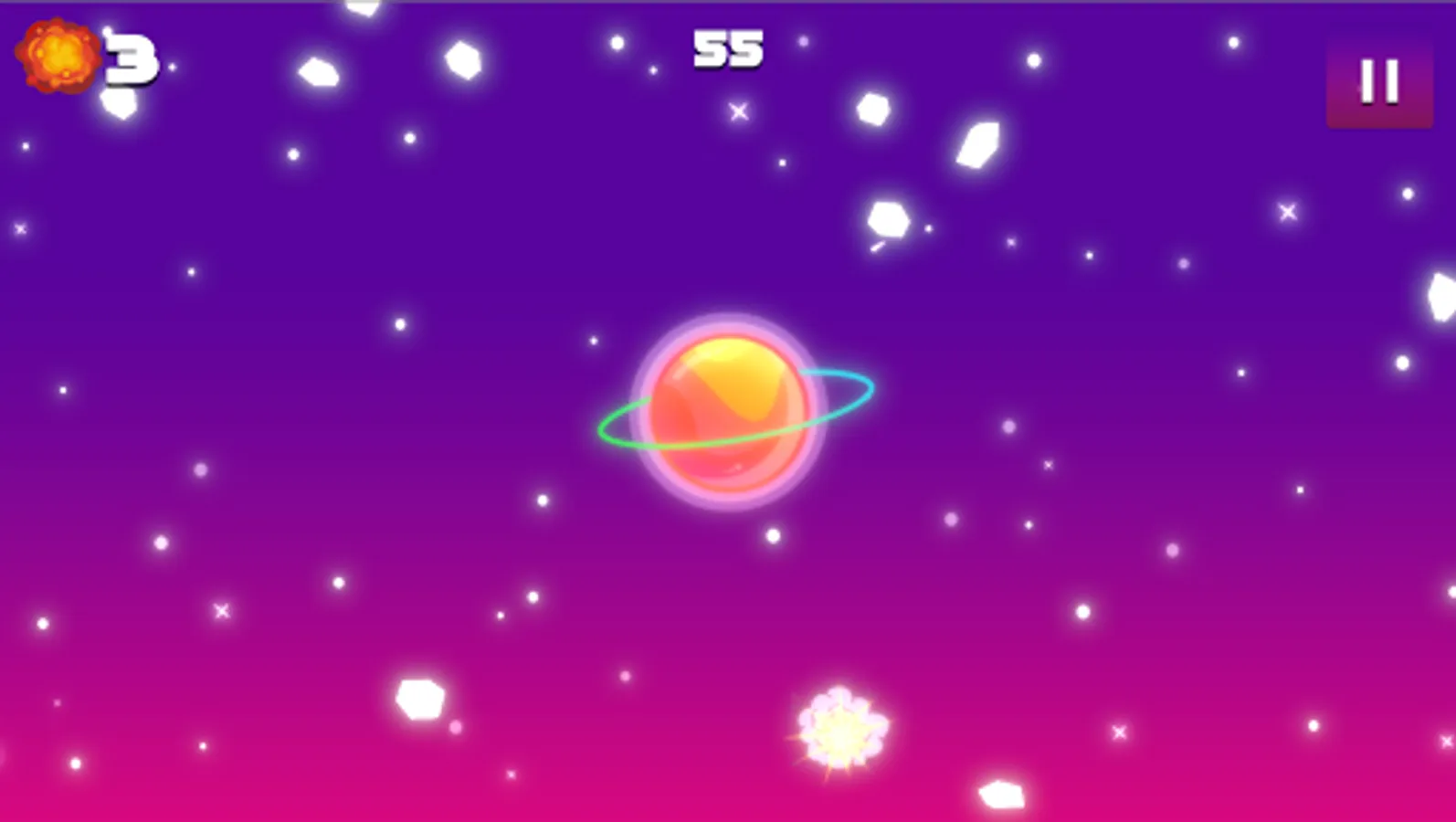 Let's test your reaction and accuracy, how long can you defend your planet? Drifting among stars, blow up asteroids, and don't let them get close to the planet. Take control of the situation and protect them from the meteor shower. Go through the levels more and more difficult and last as long as possible. Destroy everything that approaches the planet. Do it at any cost! Level up and unlock new colorful planets. Who if not you?