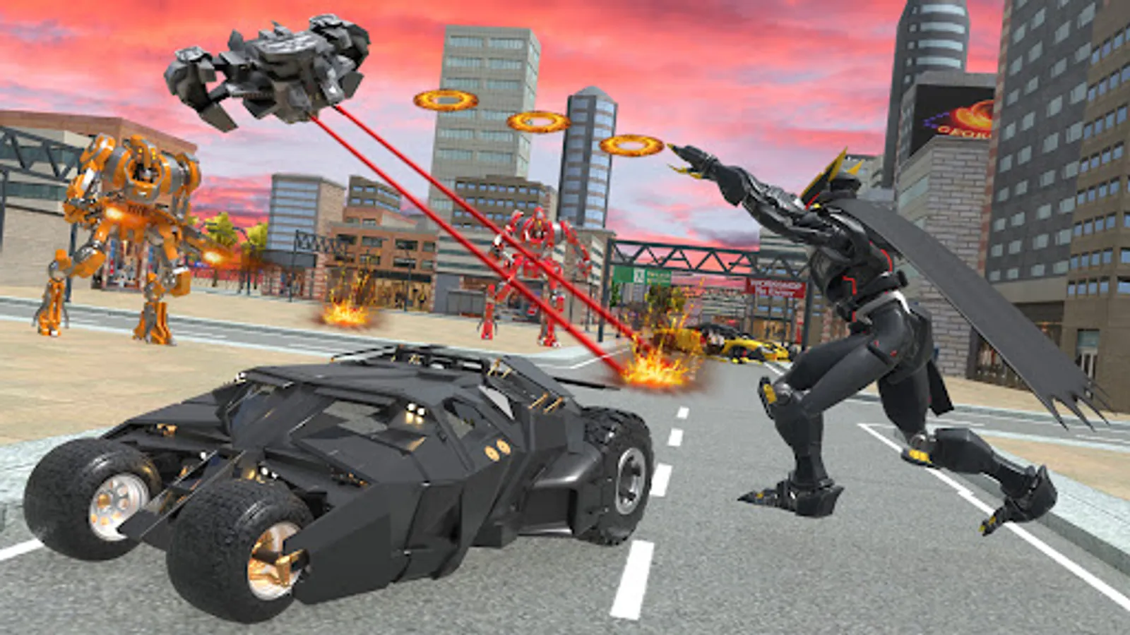 Welcome to Flying Bat Robot Car Games! In this game, you have to transform into bat bike robot and shoot the gangster in this robot transform game.