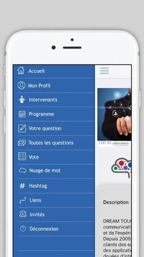 With this lightweight app, you can create interactivity with your audience. They will be able to see the program of the event and its speakers, send and receive messages, participate in polls by voting, ask questions live, but also create a cloud of animated words.